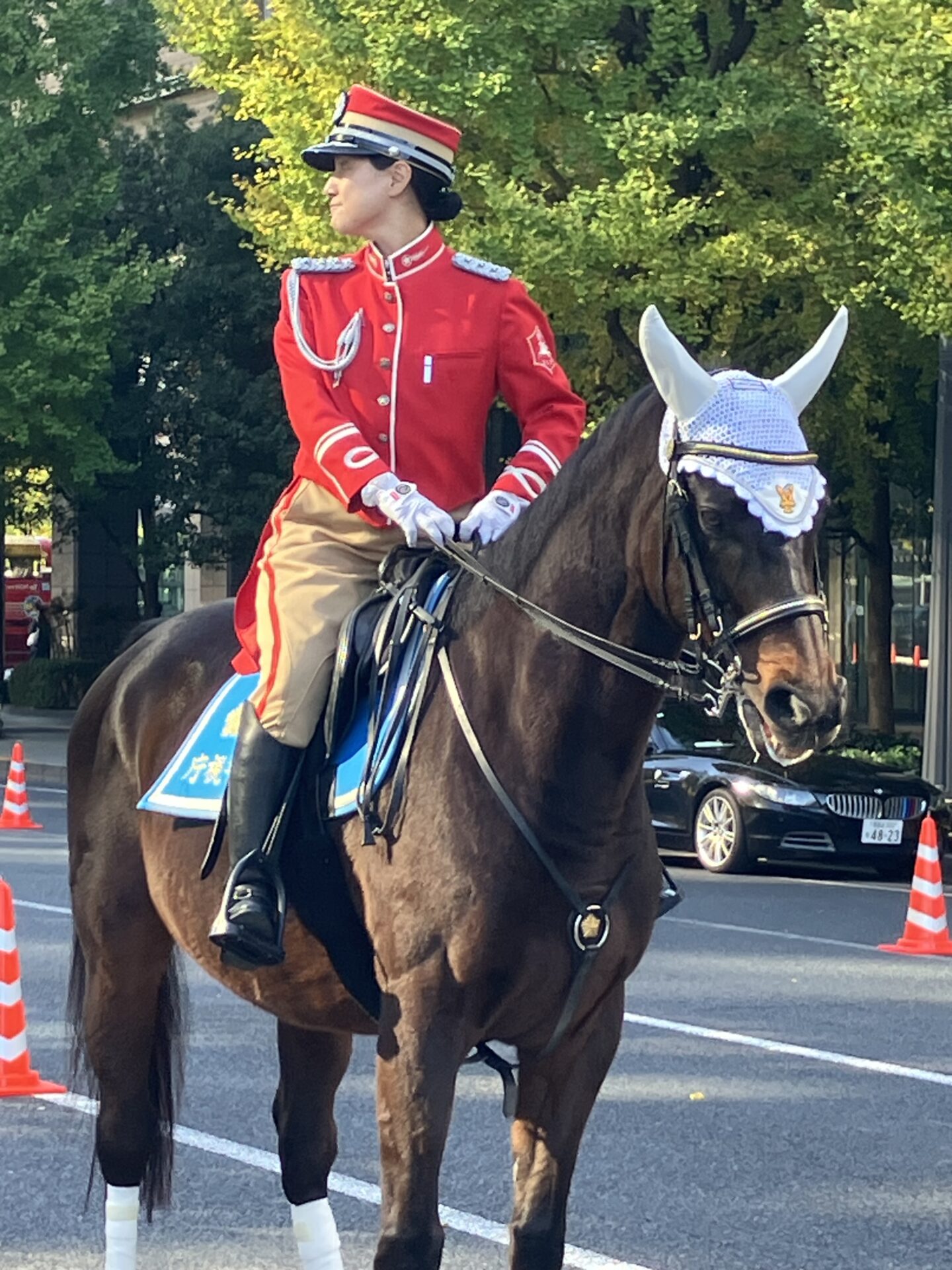 到着すると、ちょうど警視庁騎馬隊のお馬さんも到着したところでした!