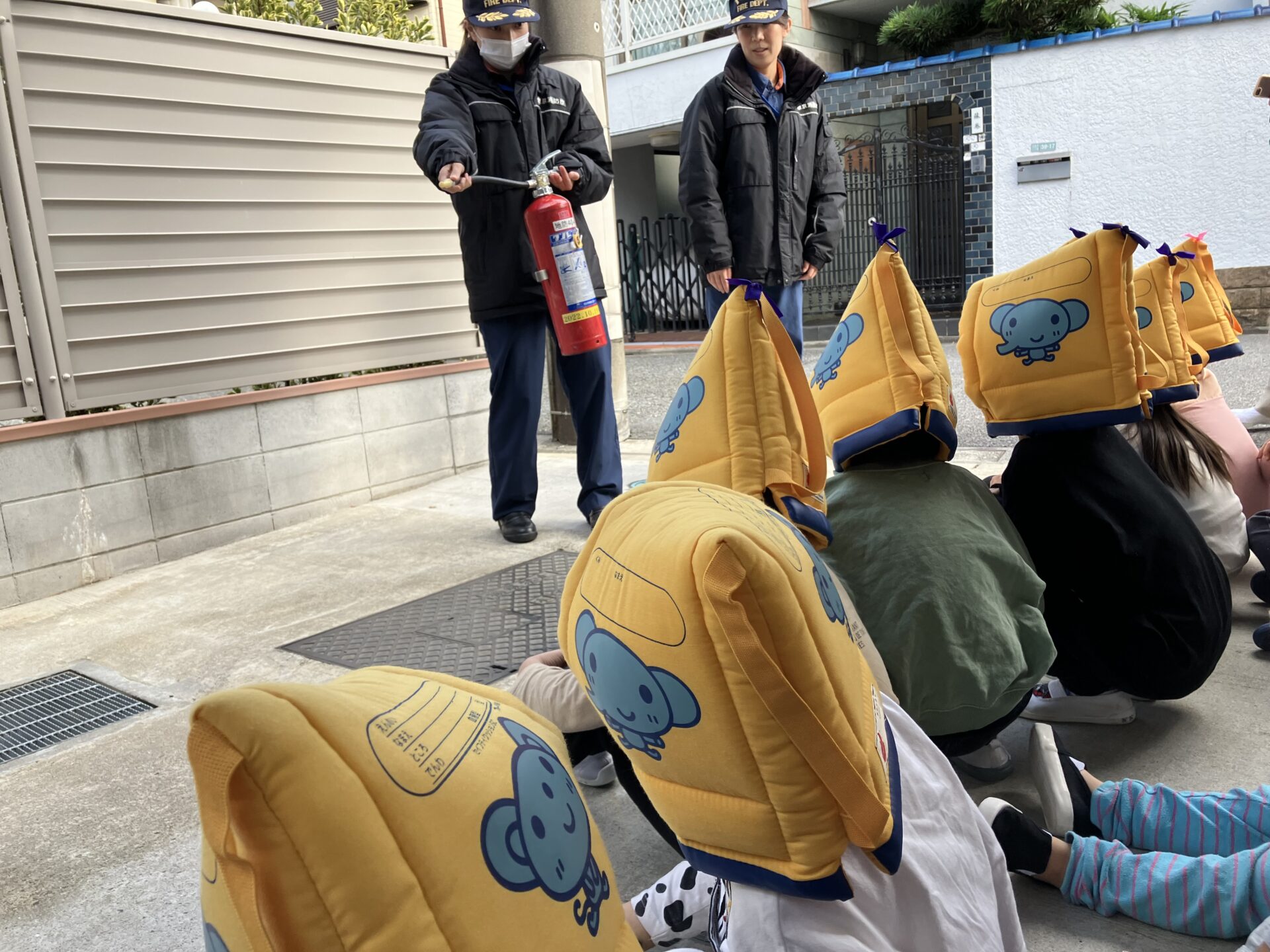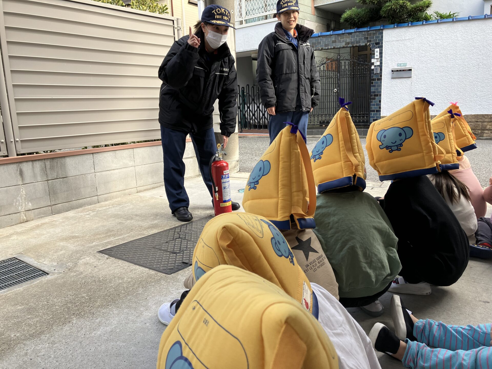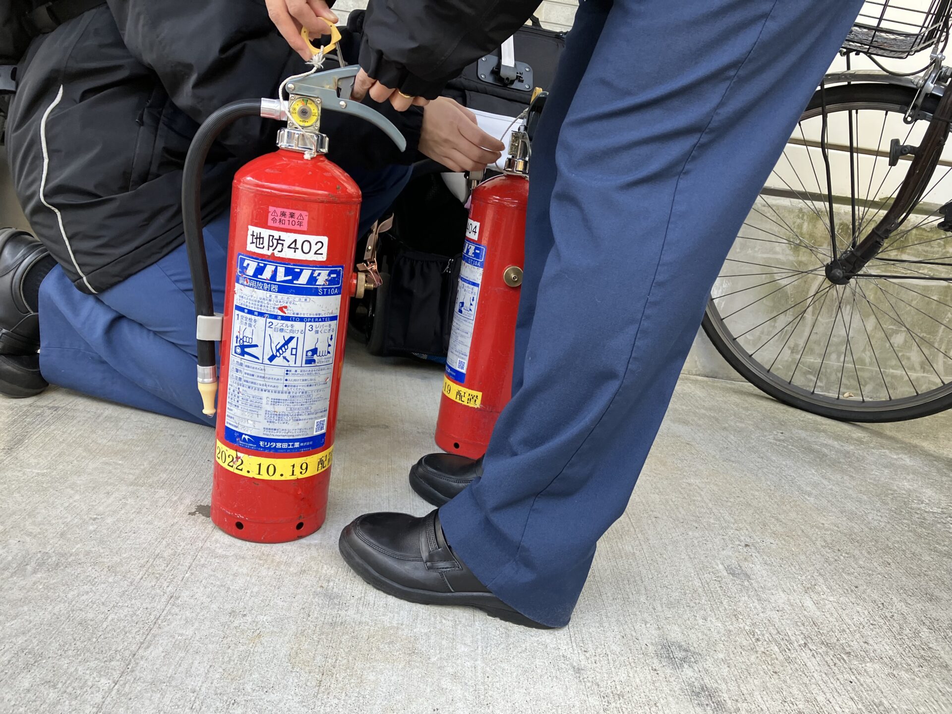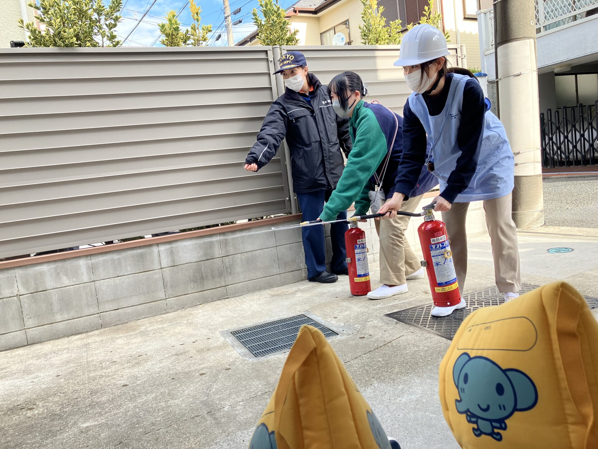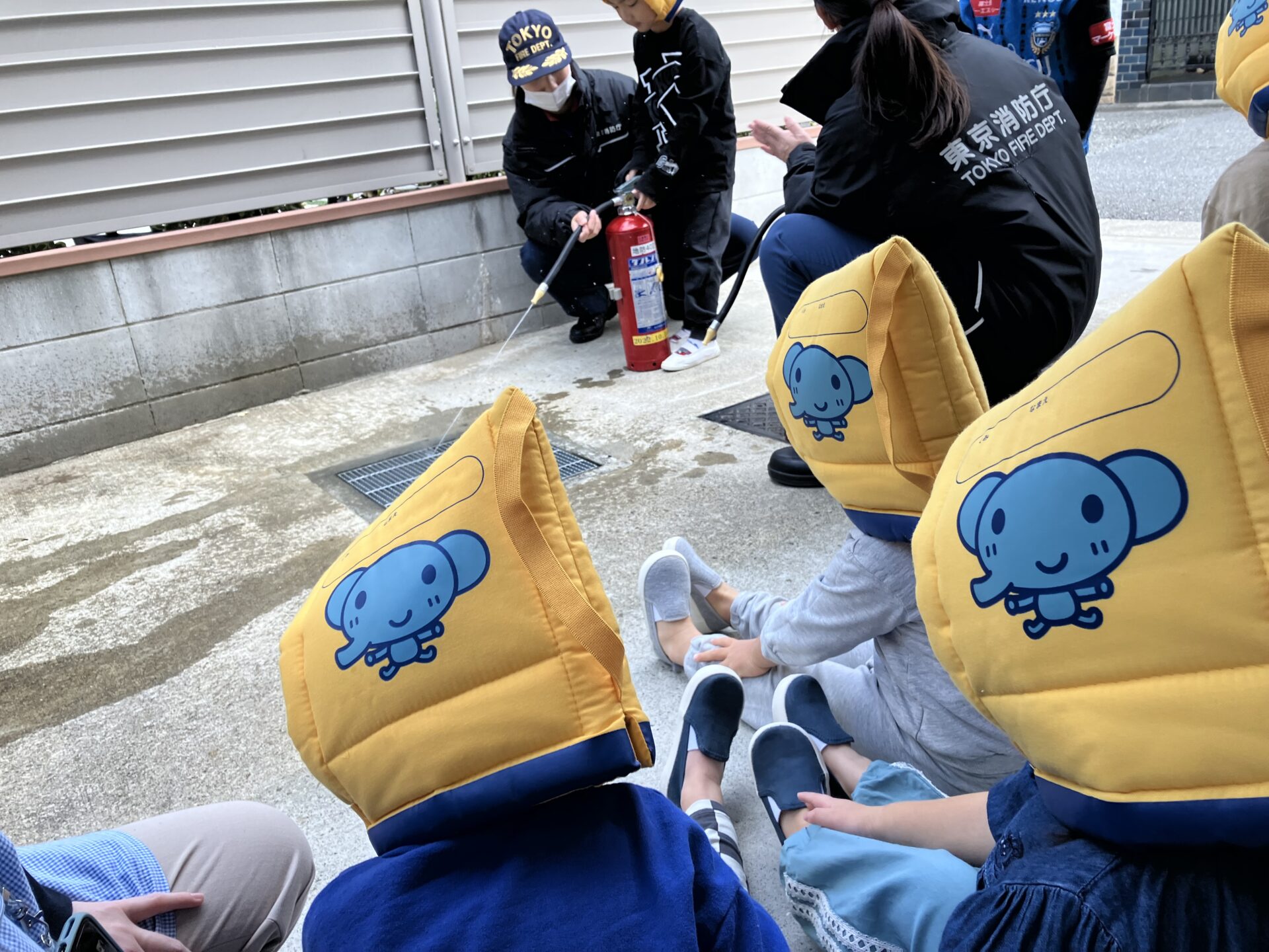 避難訓練の様子を見てもらったり、消火器の使い方を教えてもらったりしました!