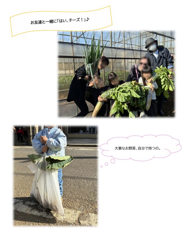 さんにて、大切に育てて下さったお野菜を親子で収穫させて頂いています。