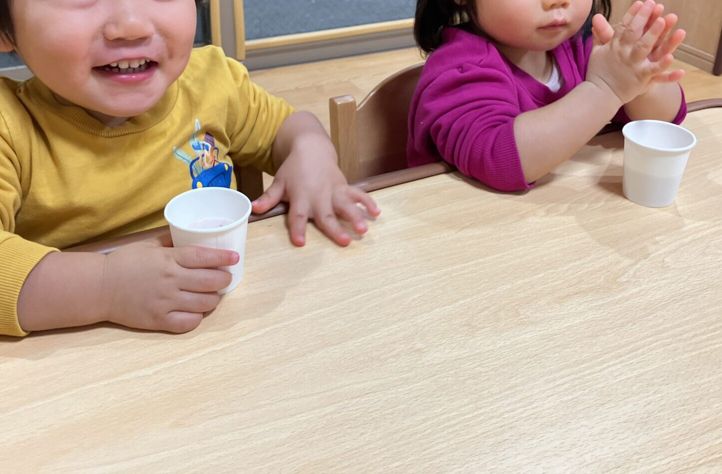 季節のフルーツに触れ自分たちで作ったジュースを「おいしい!」と飲む姿がとても可愛らしかったです!