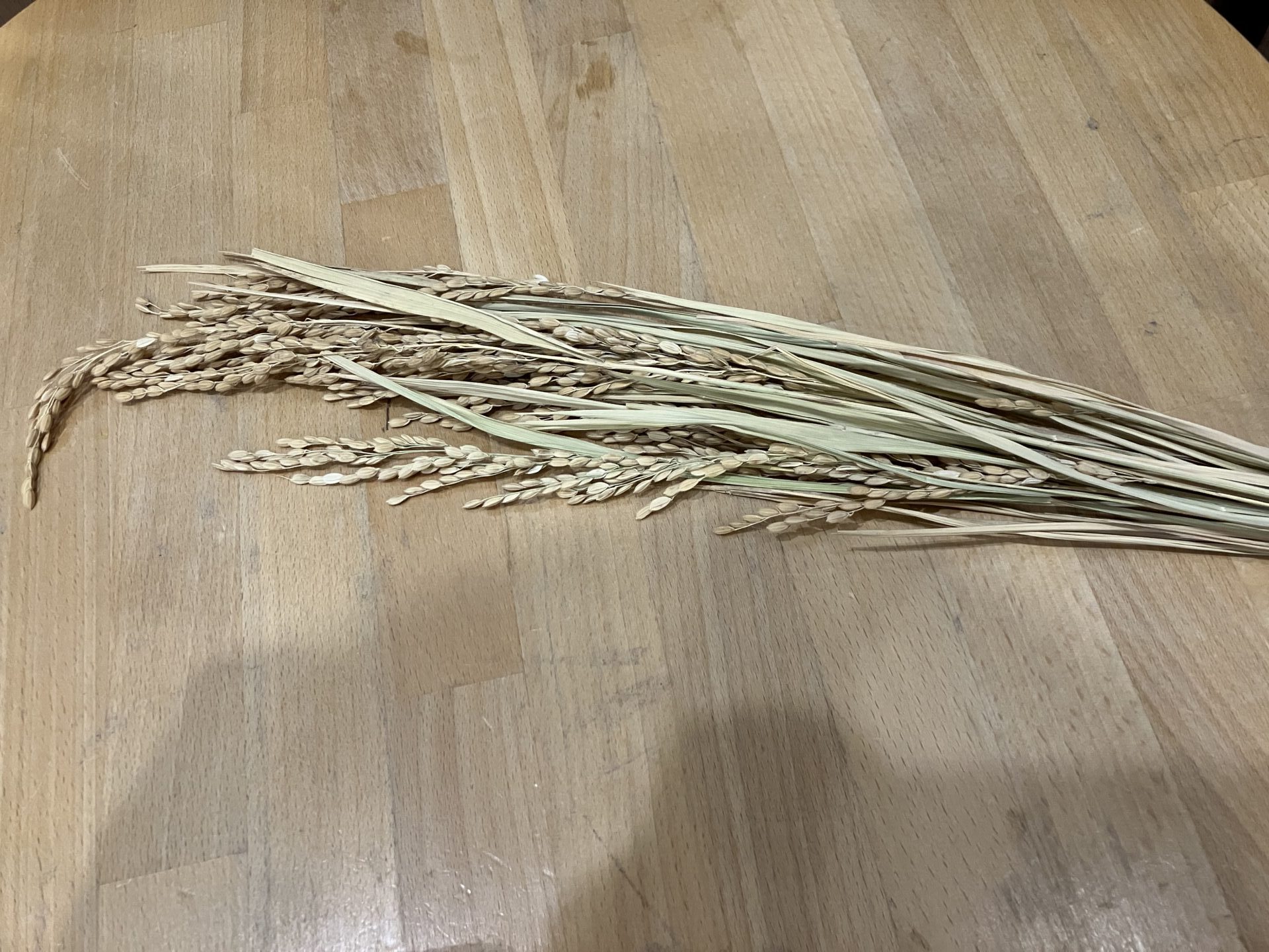 広い田んぼの写真を見せると、「田んぼみたことある!」「稲刈り機知ってるよ!」と答えてくれました。かたい米粒はどうすればごはんになるか問いかけると、「炊飯器に入れるとやわらかくなるよ」と教えてくれました。お家でお米を研いだりお手伝いをしているのかな?