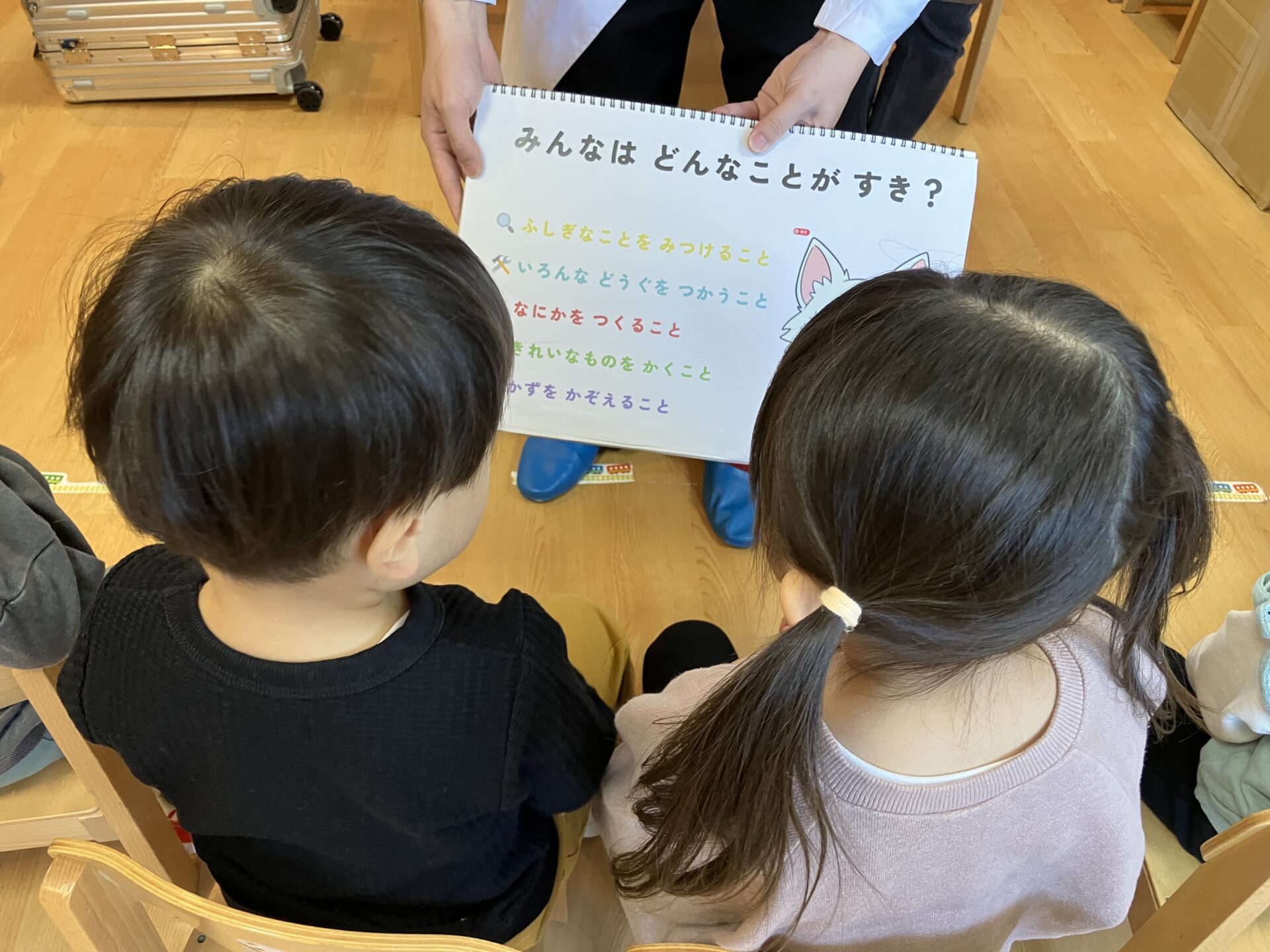 普段の遊びの中から「なぜ?」「どうして?」を子ども同士の対話や実験を通して探究してきた子どもたちにさらに興味関心を広げてほしいなと思い、ワークショップを行いました♪