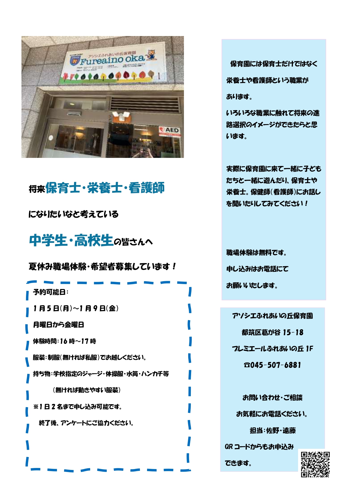 職業体験のお知らせ