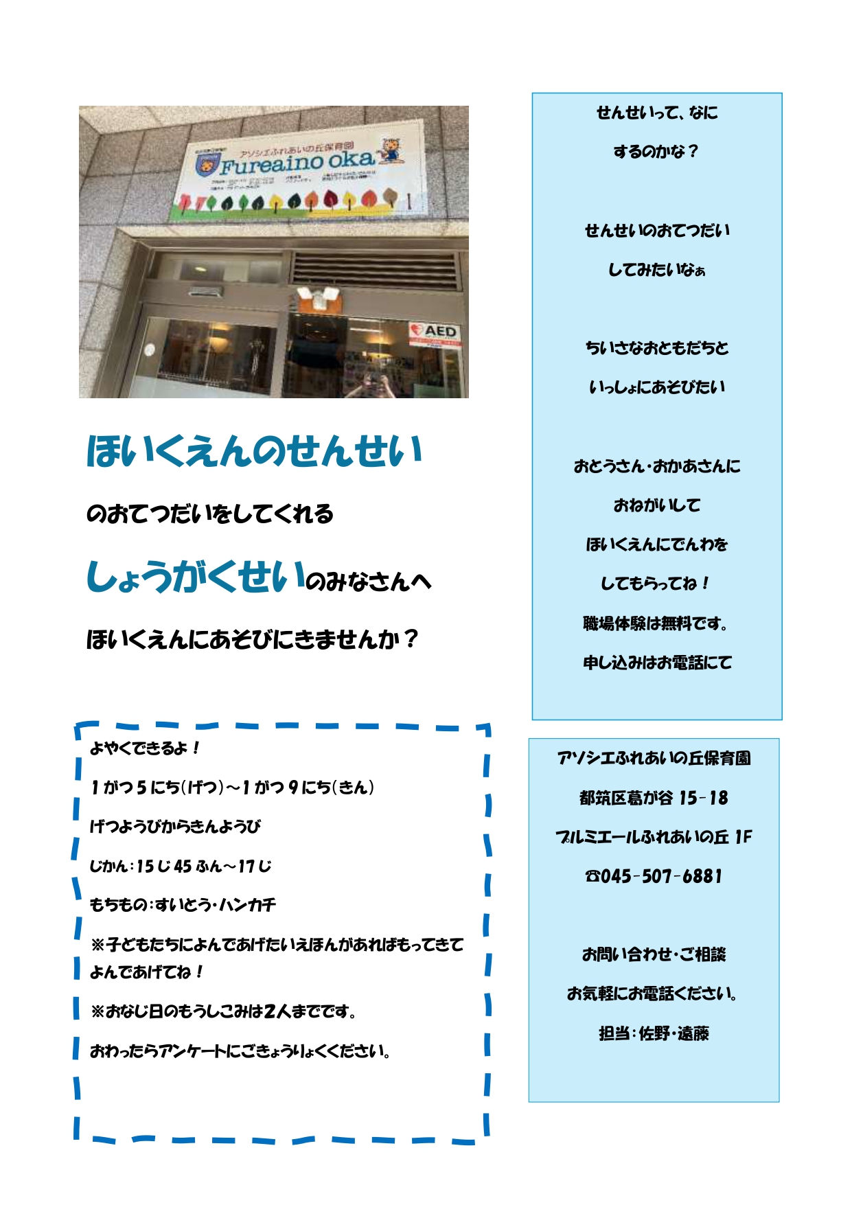 短い期間にはなりますが保育園での体験をしませんか?