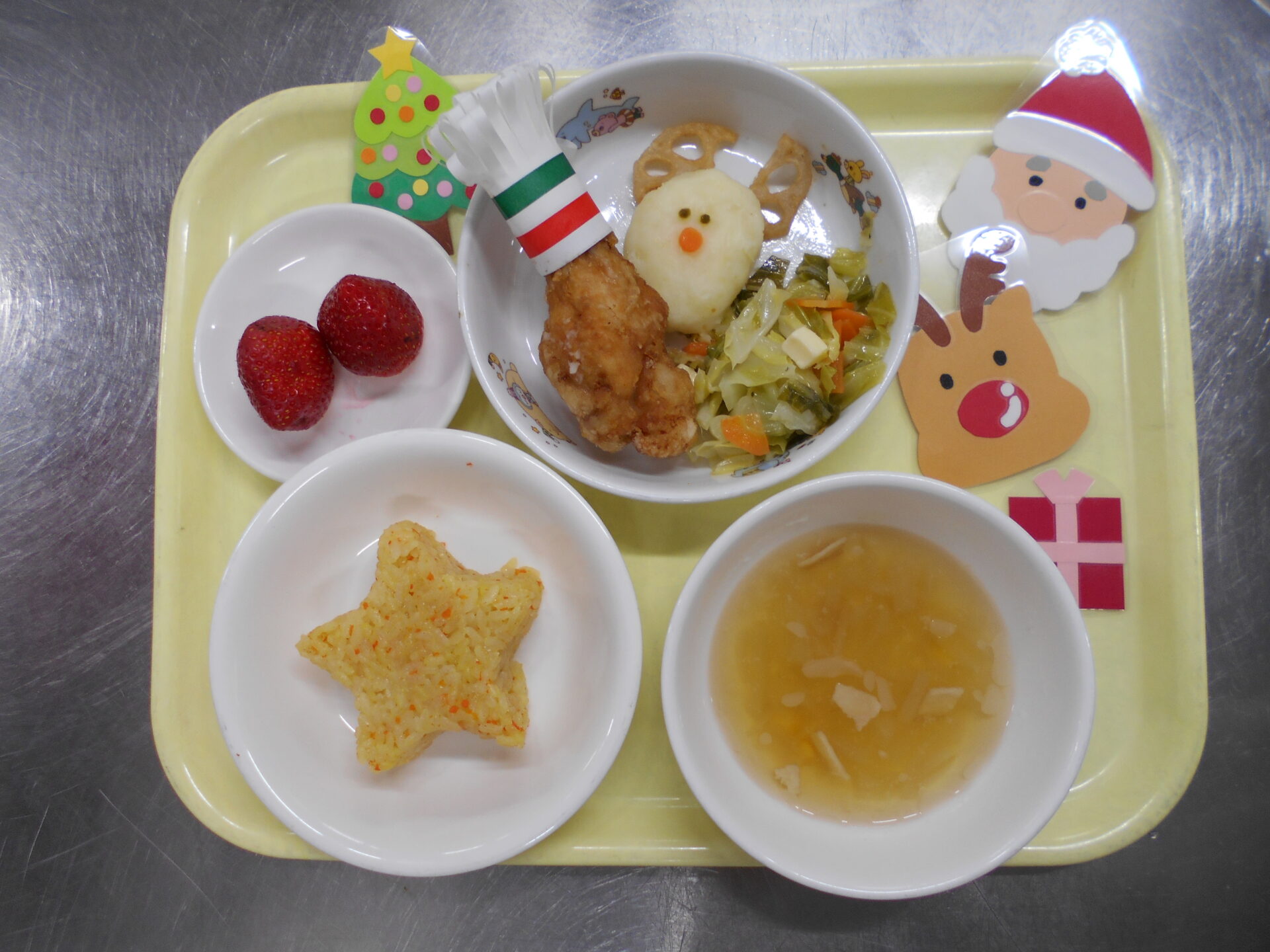 24日に行われた【年末お楽しみ会】に合わせて、季節の行事食を提供しました。