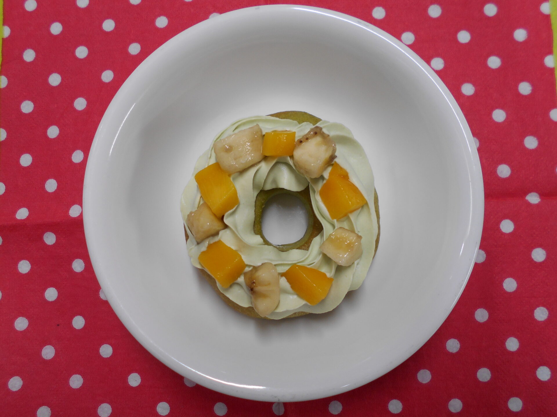 リースの飾りの部分はバナナと桃でオーナメントのようにトッピングしました。