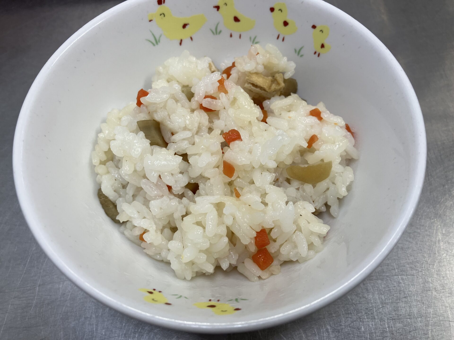 保育園でもごぼうや人参、油揚げを用いて作り、醤油味の炊き込みご飯は子どもたちも親しみのある味でとても人気でした!