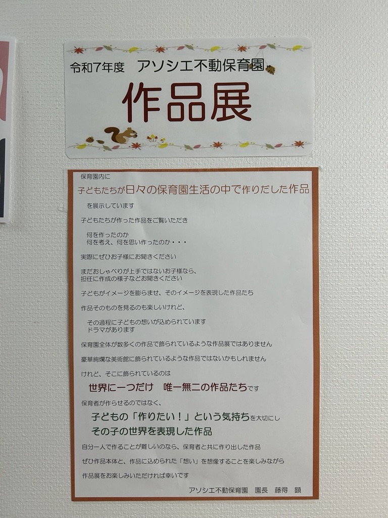アソシエ不動保育園では毎年作品展を開催しています。