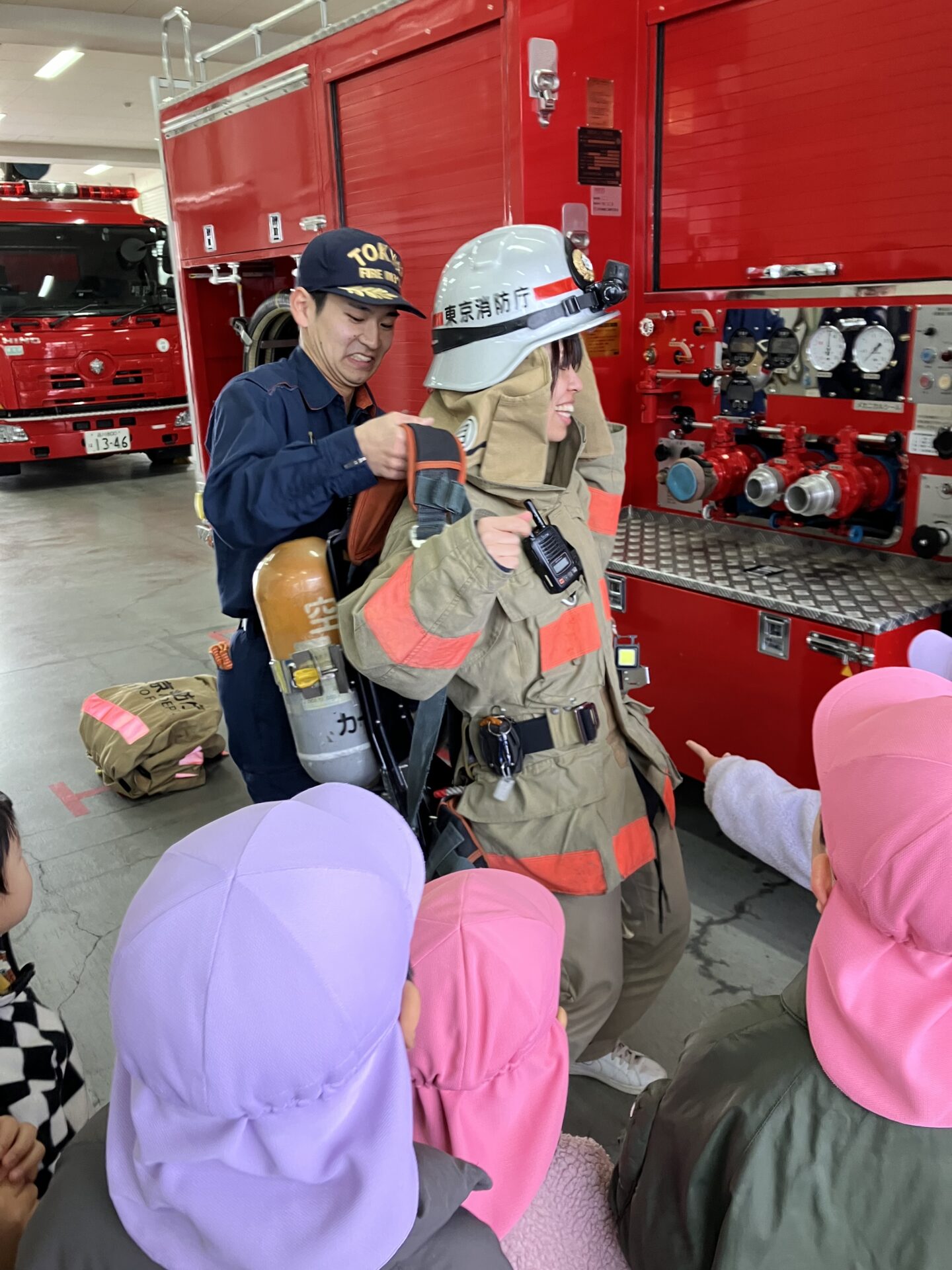 先日きりん組さん、らいおん組さんで消防署見学に行きました。