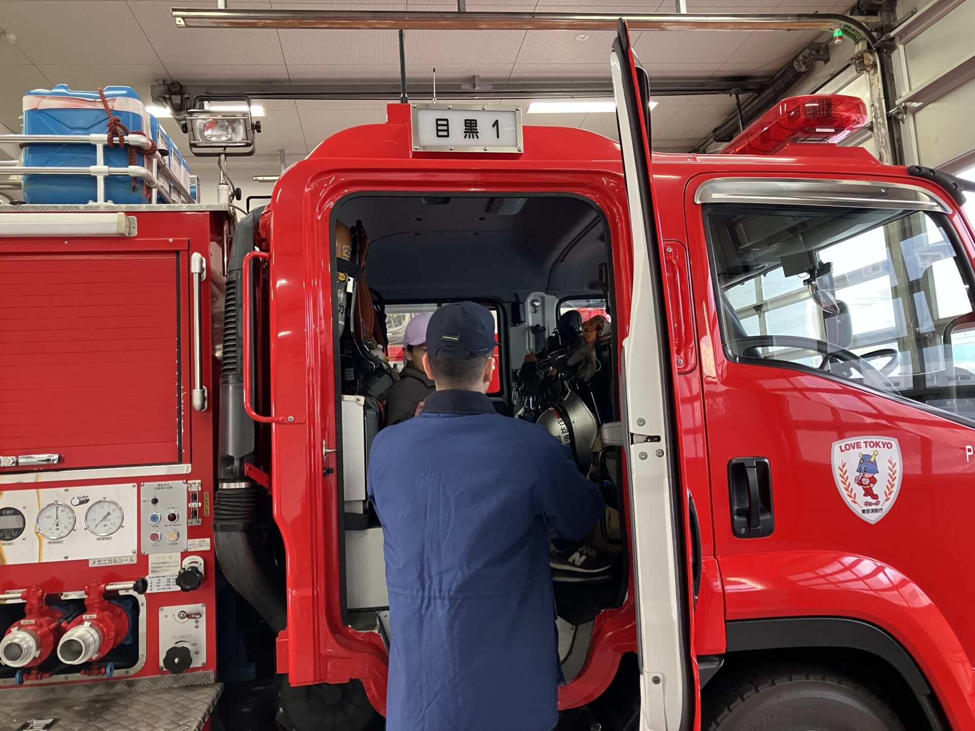 「消防車の中にある荷物を入れ替えているんだよ」と丁寧に教えていただきました。