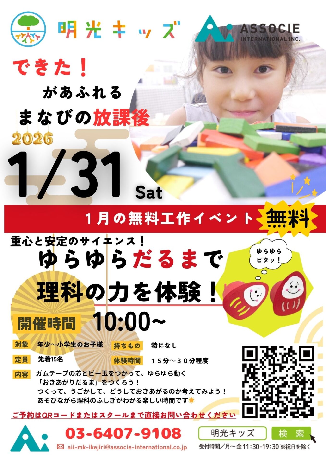 明光キッズの説明会は不要で、工作イベントのみに参加したいという方は下記イベントにご参加ください!