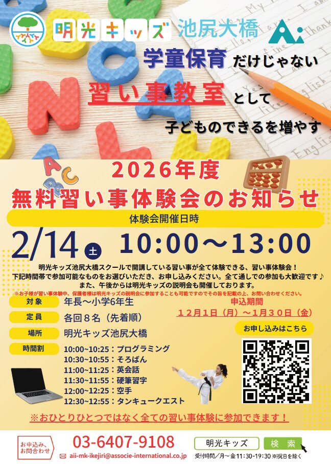 【民間学童/池尻大橋】2月説明会&習い事体験会のお知らせ