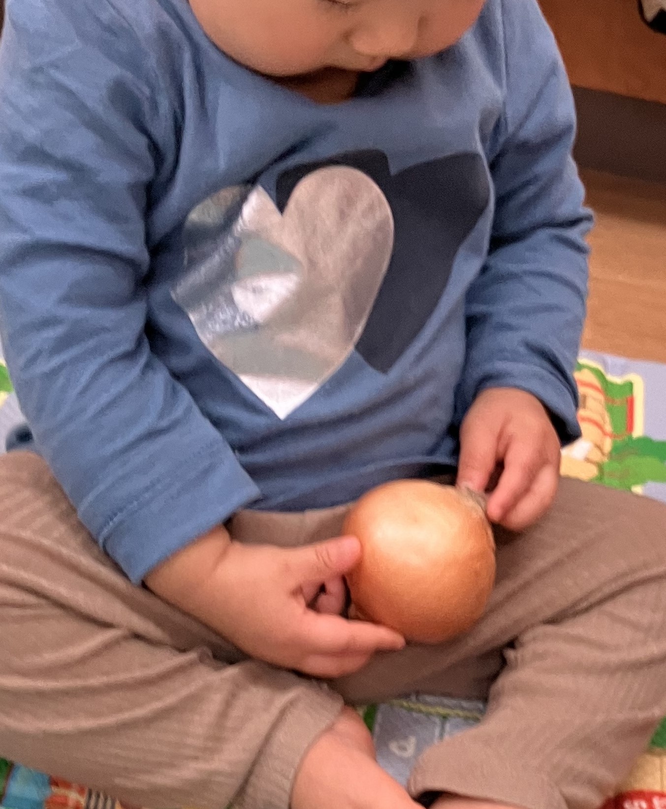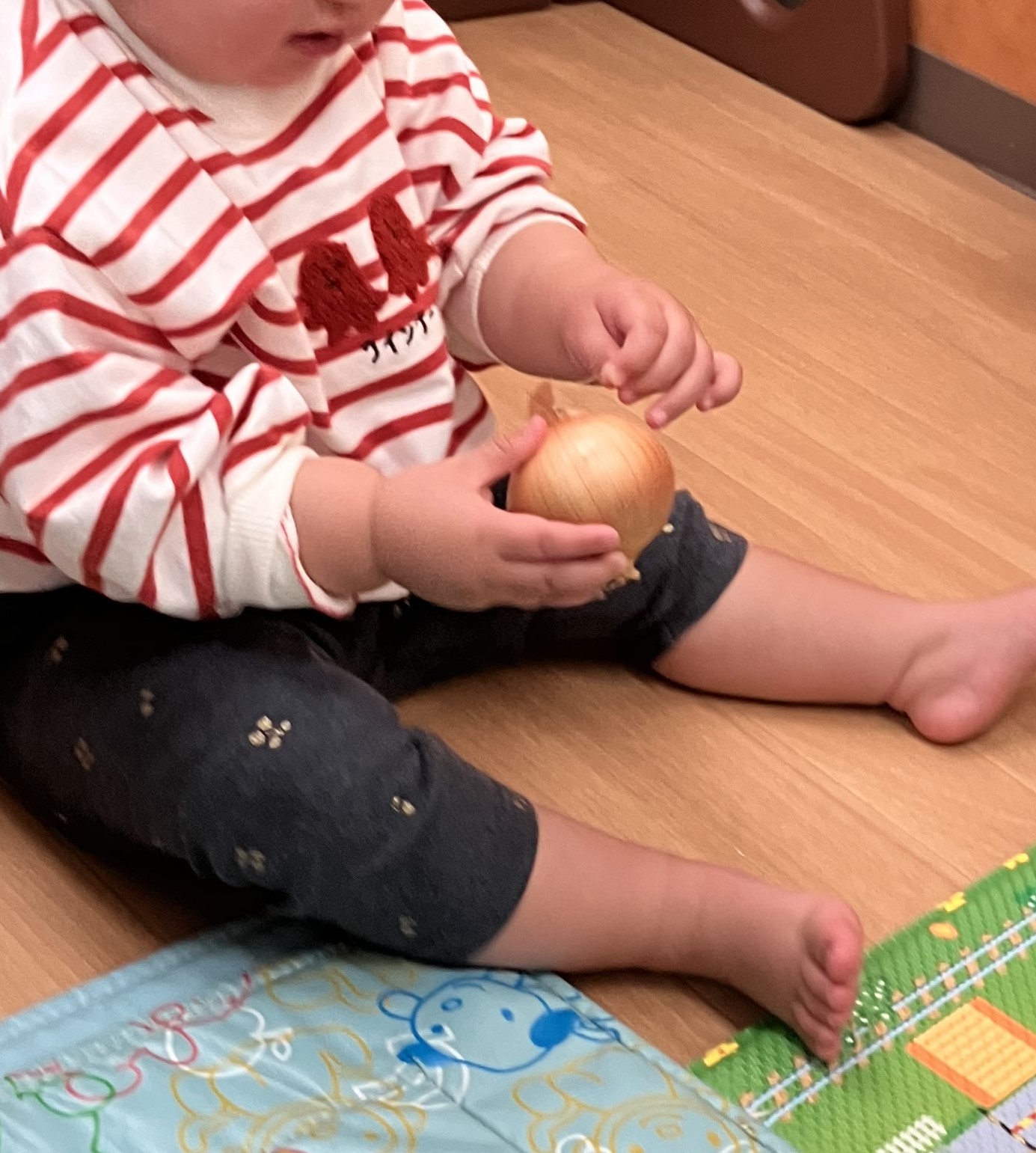 0歳児食育 カレーの野菜を触ってみよう🥕