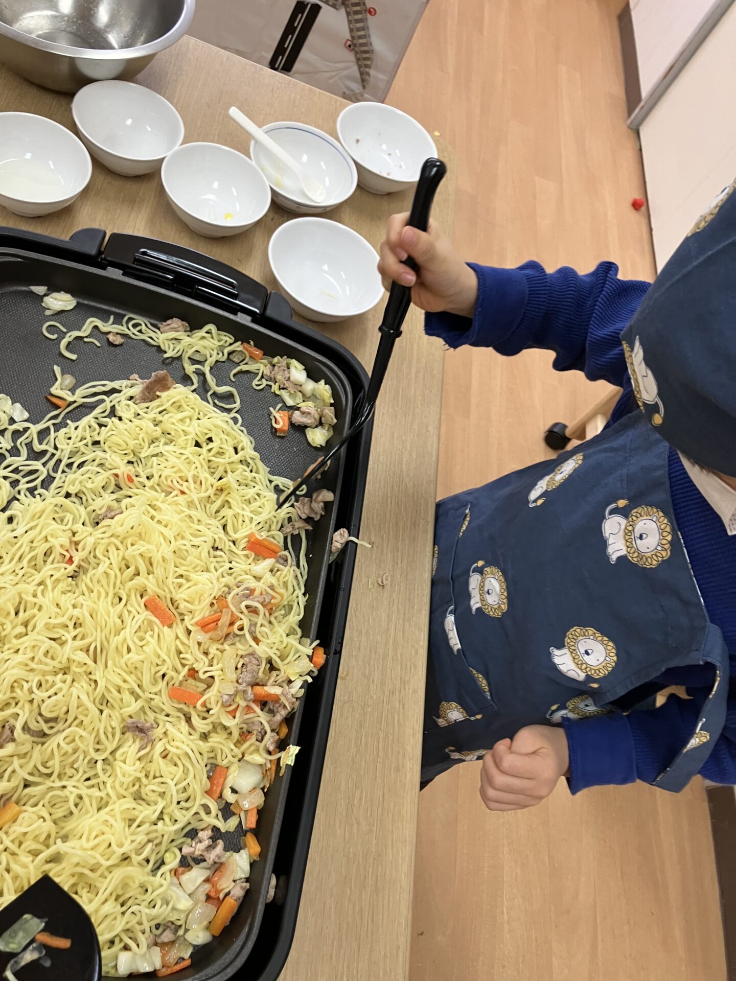 ⁂4歳児食育 ホットプレートで焼きそば作り♪