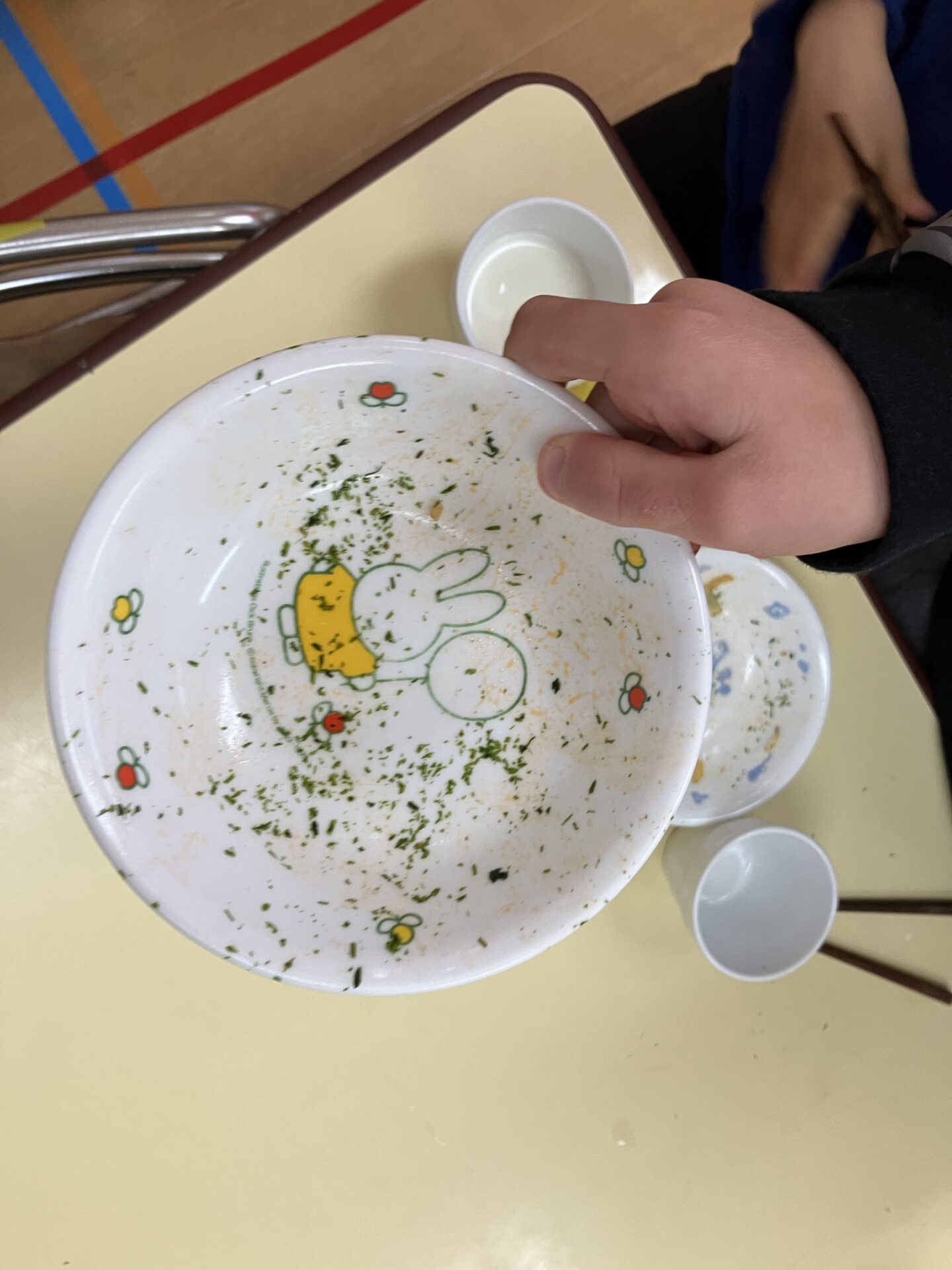 お皿に盛って、最後に青のりをトッピング!おやつとしていただきます!「おいしい!」「野菜もおいしい!」とみんな完食!おかわりまでしました♪野菜が苦手な子も食べる事ができました。