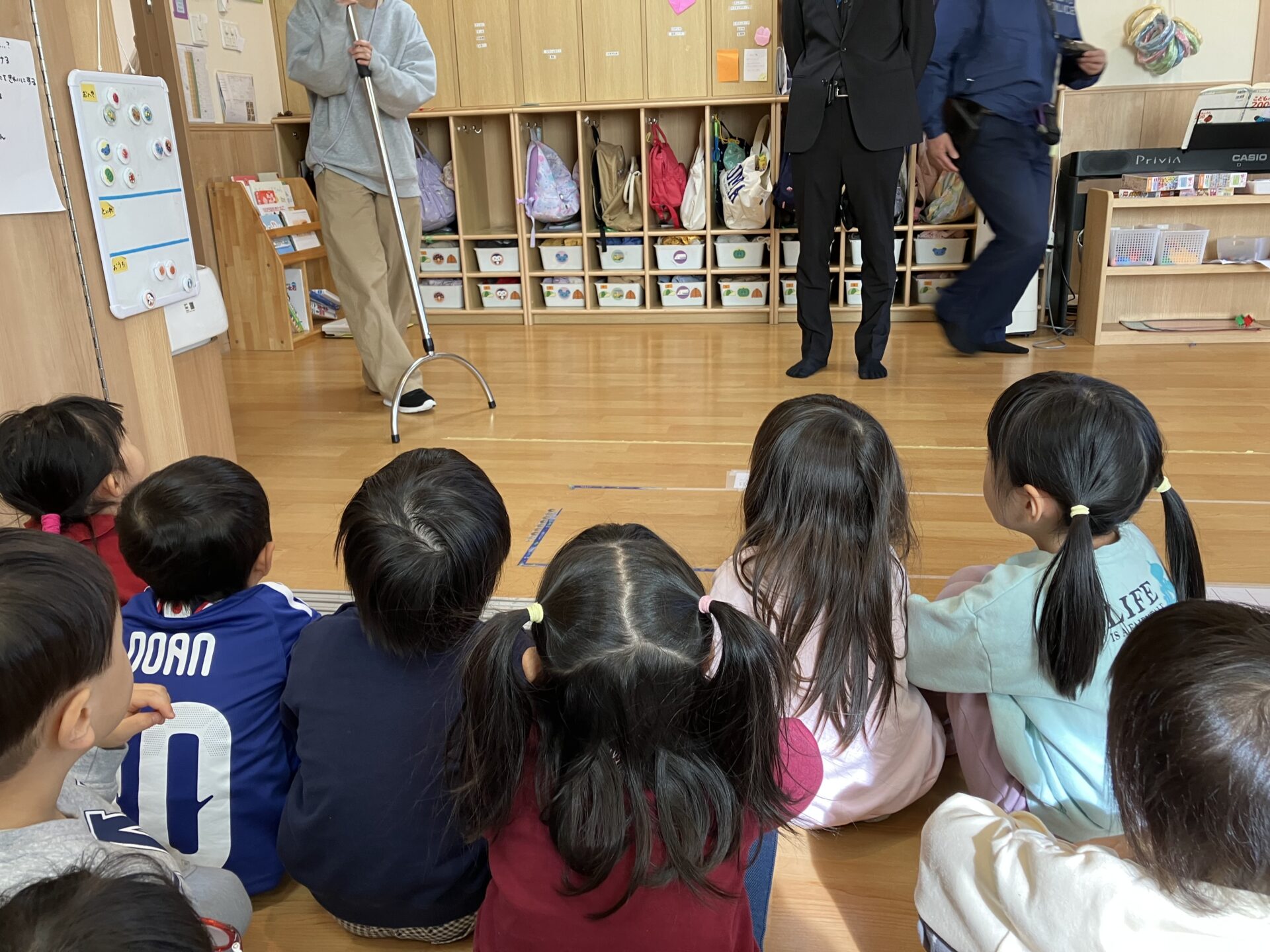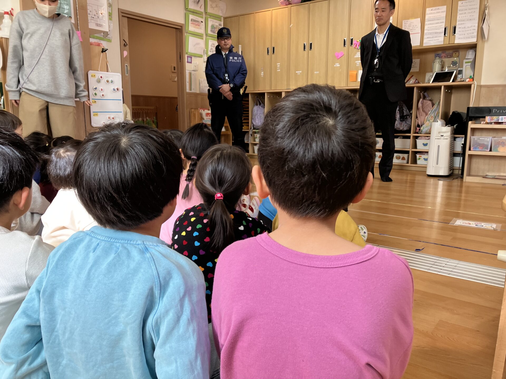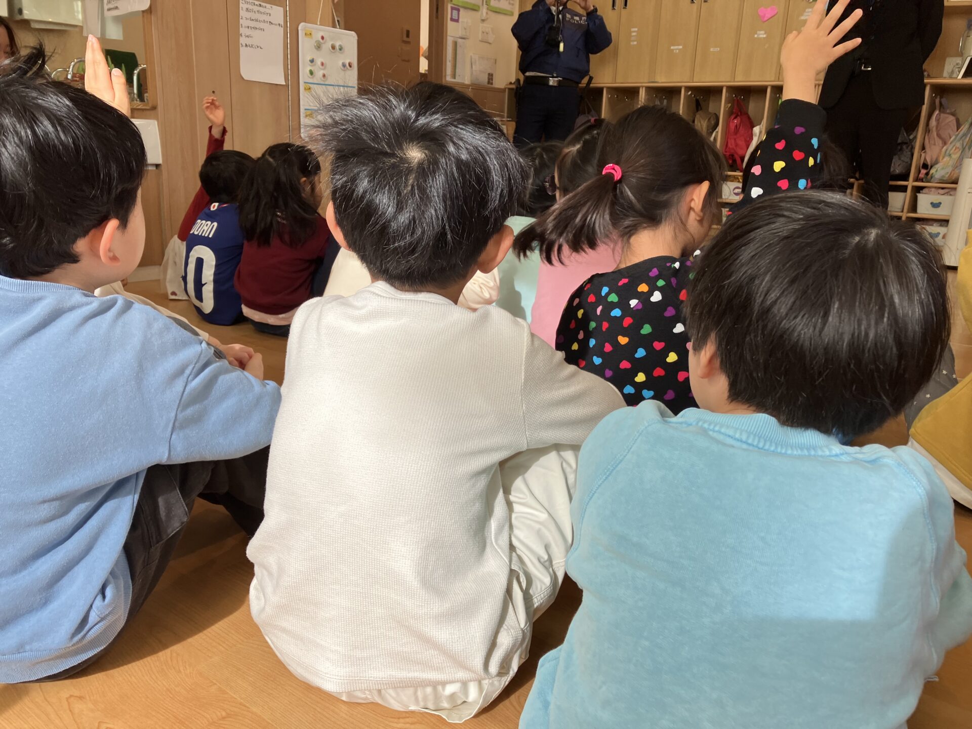 訓練を行った後は、警察官の方に子どもたちへ話をしてもらいました。