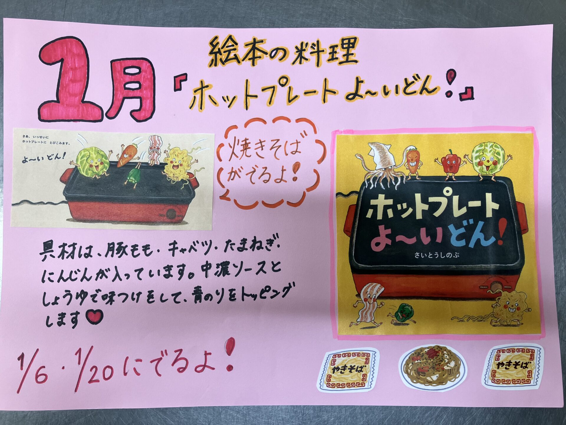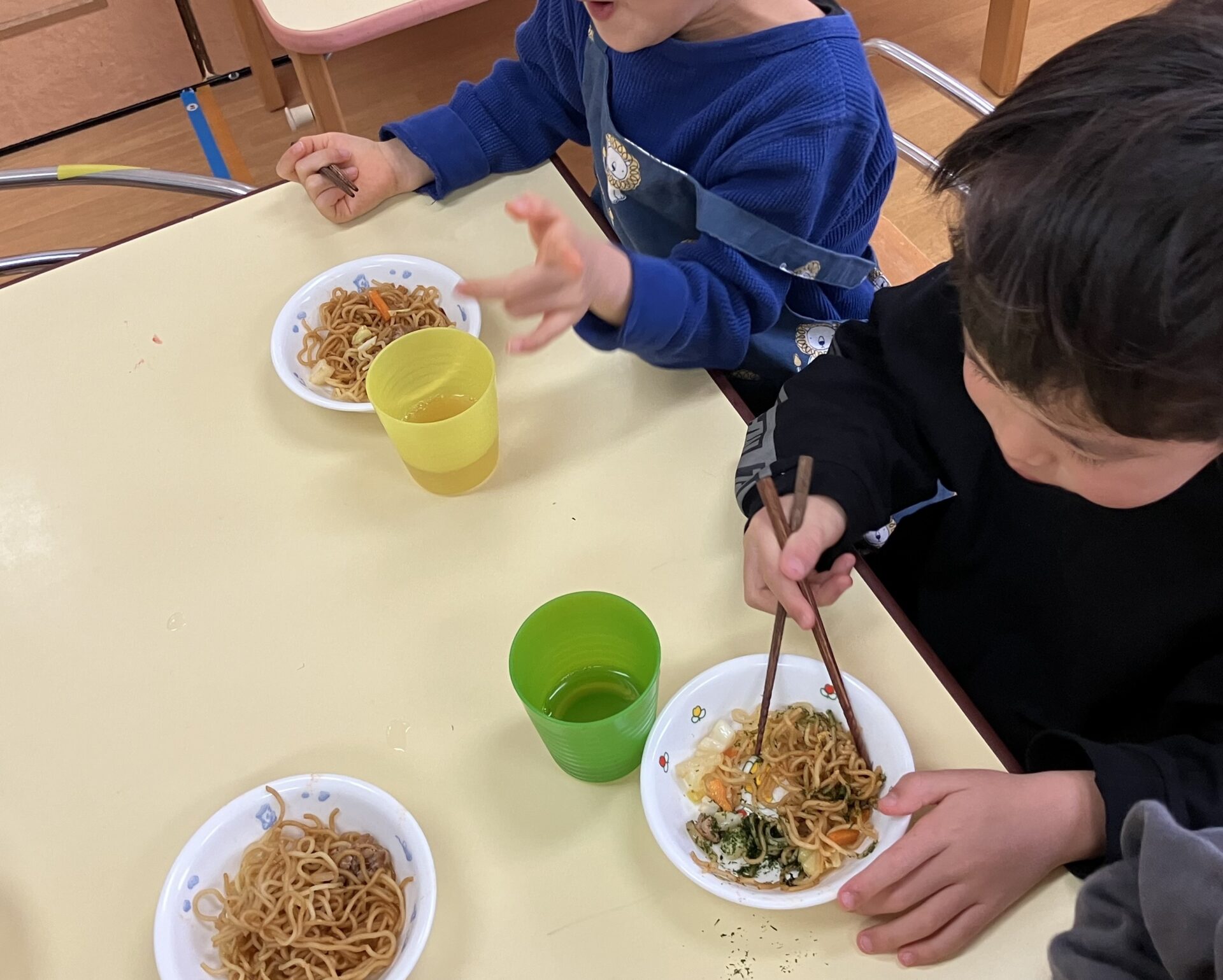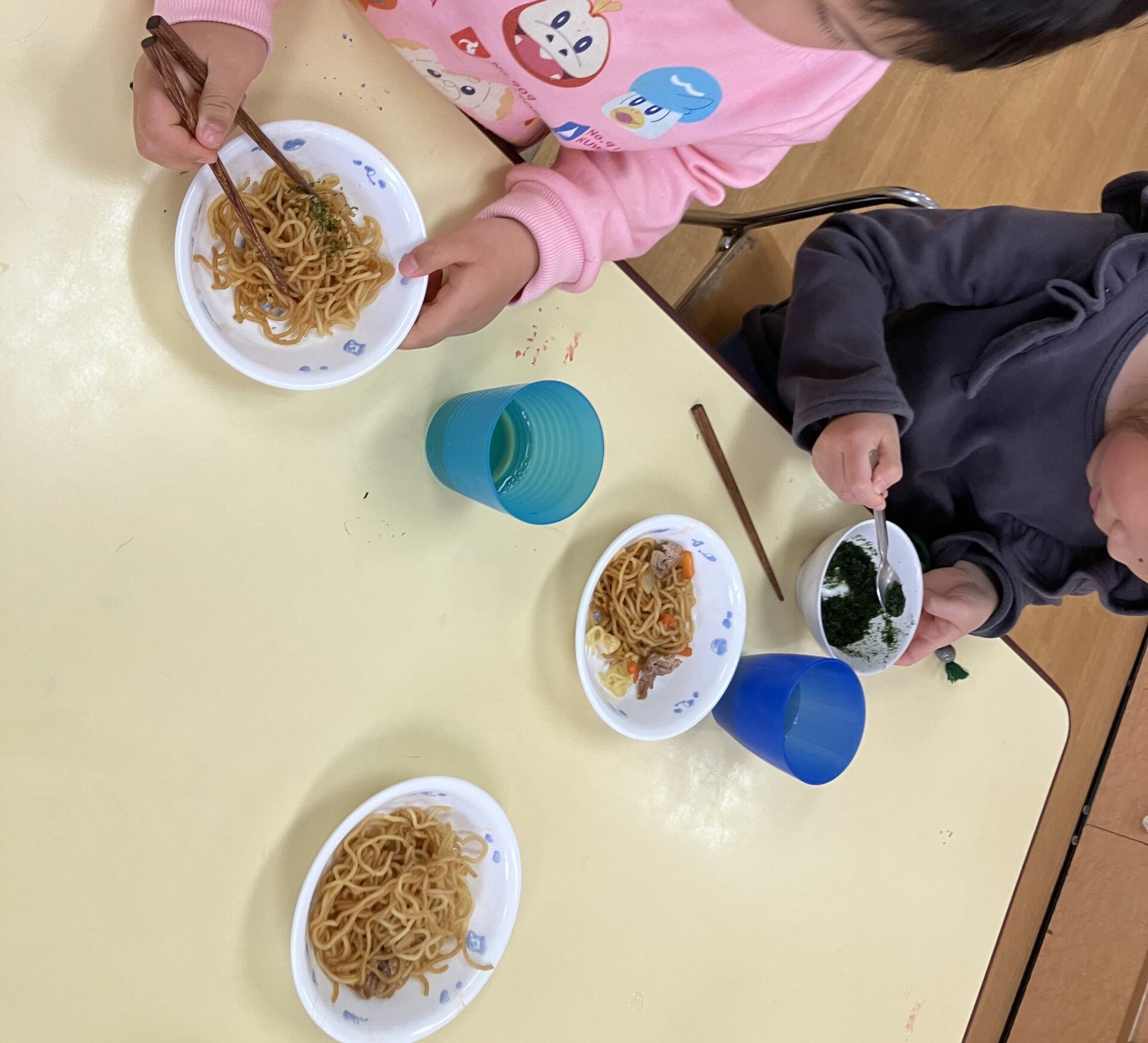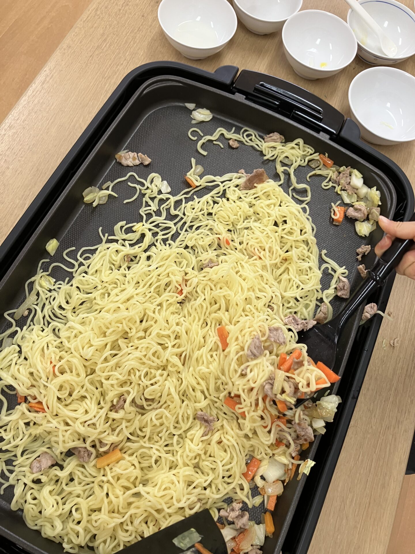 絵本の料理・ホットプレートよーいどんより「やきそば」を提供しました!