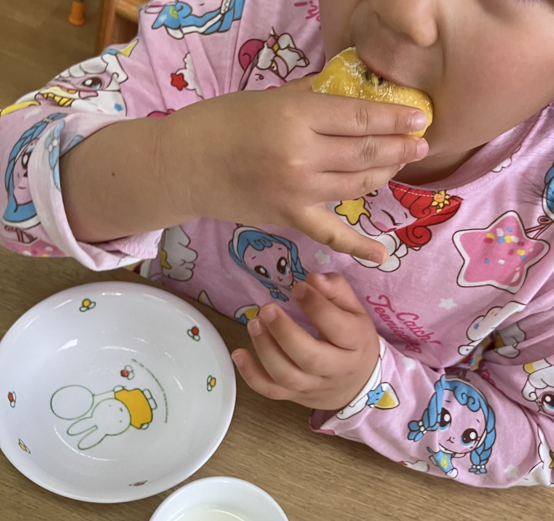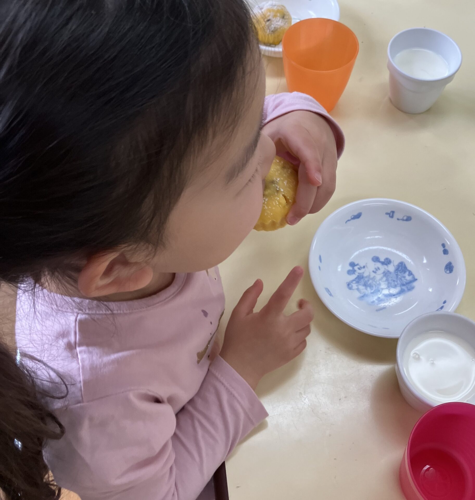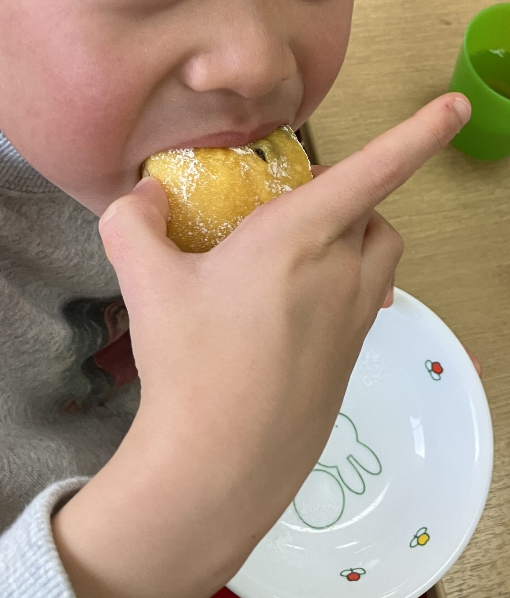 「上の白い粉はなに~?」「甘いお砂糖だよ!」