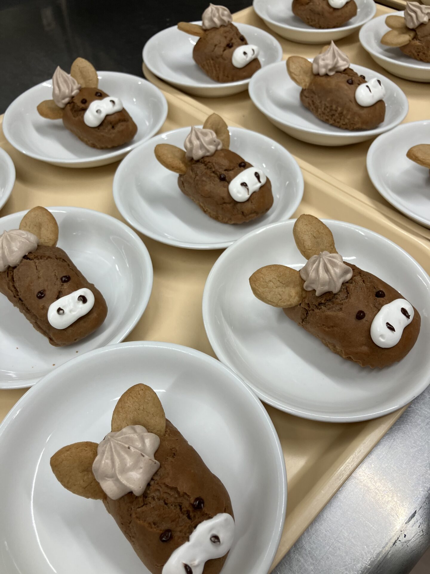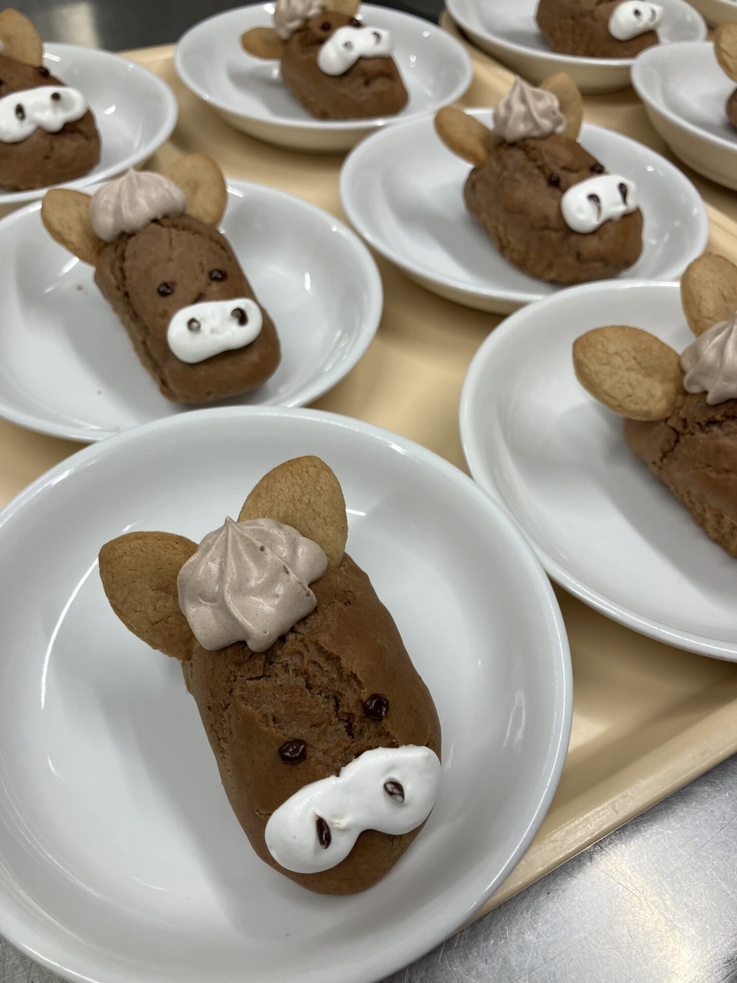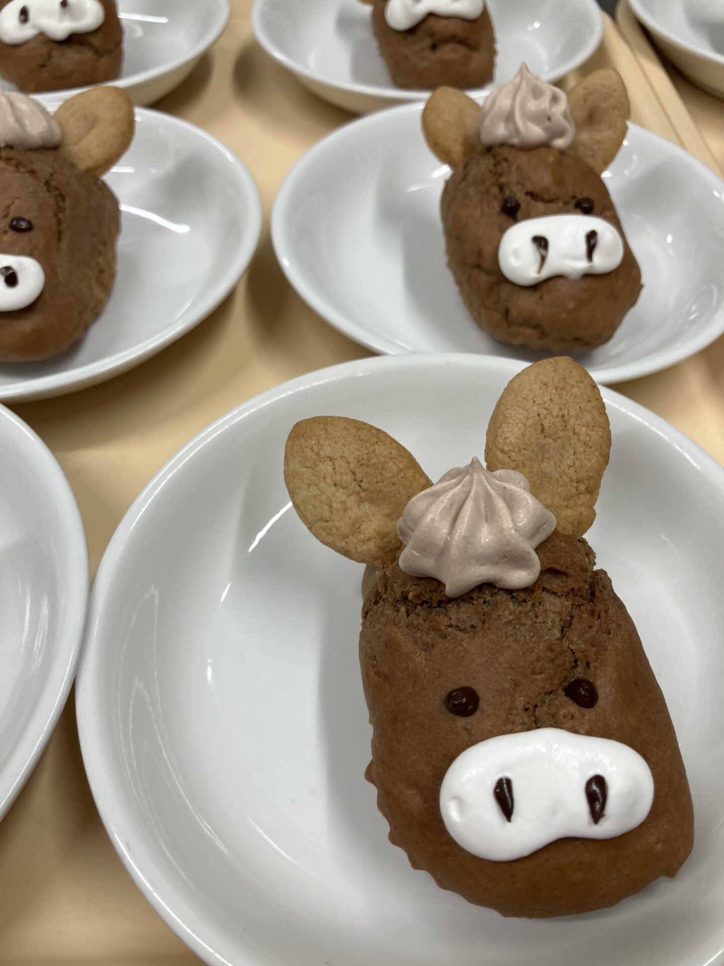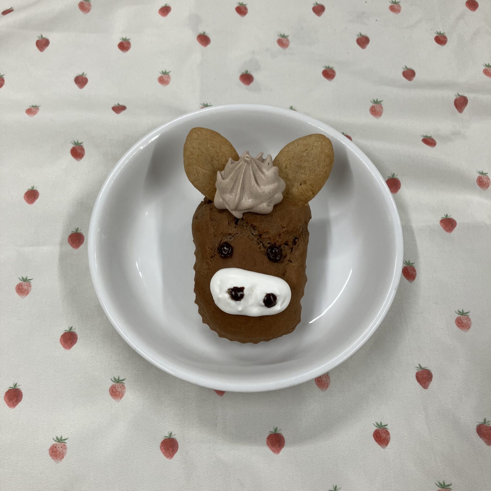 お耳をクッキー、前髪をココアクリームで作ってみましたがお馬さんに見えるでしょうか…?