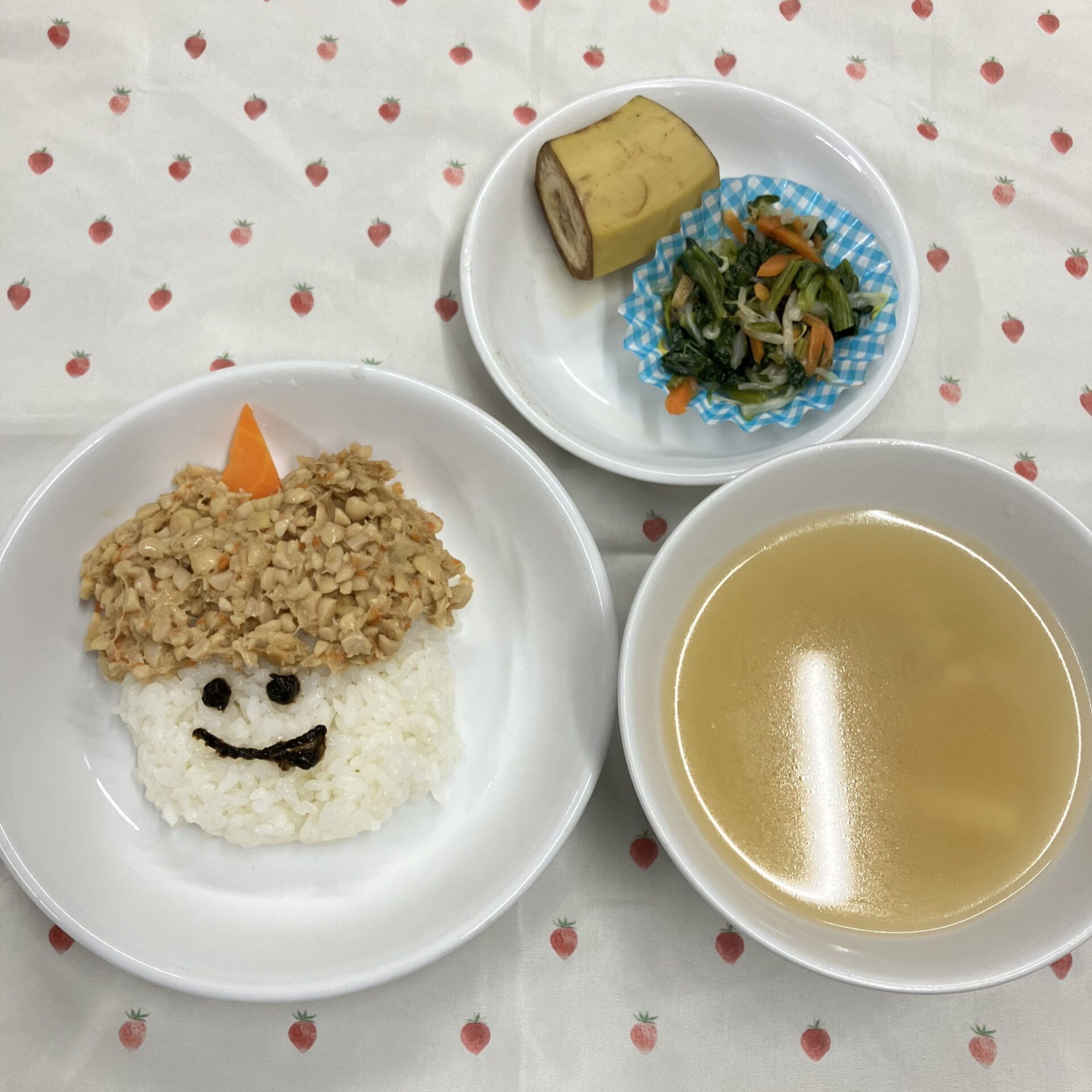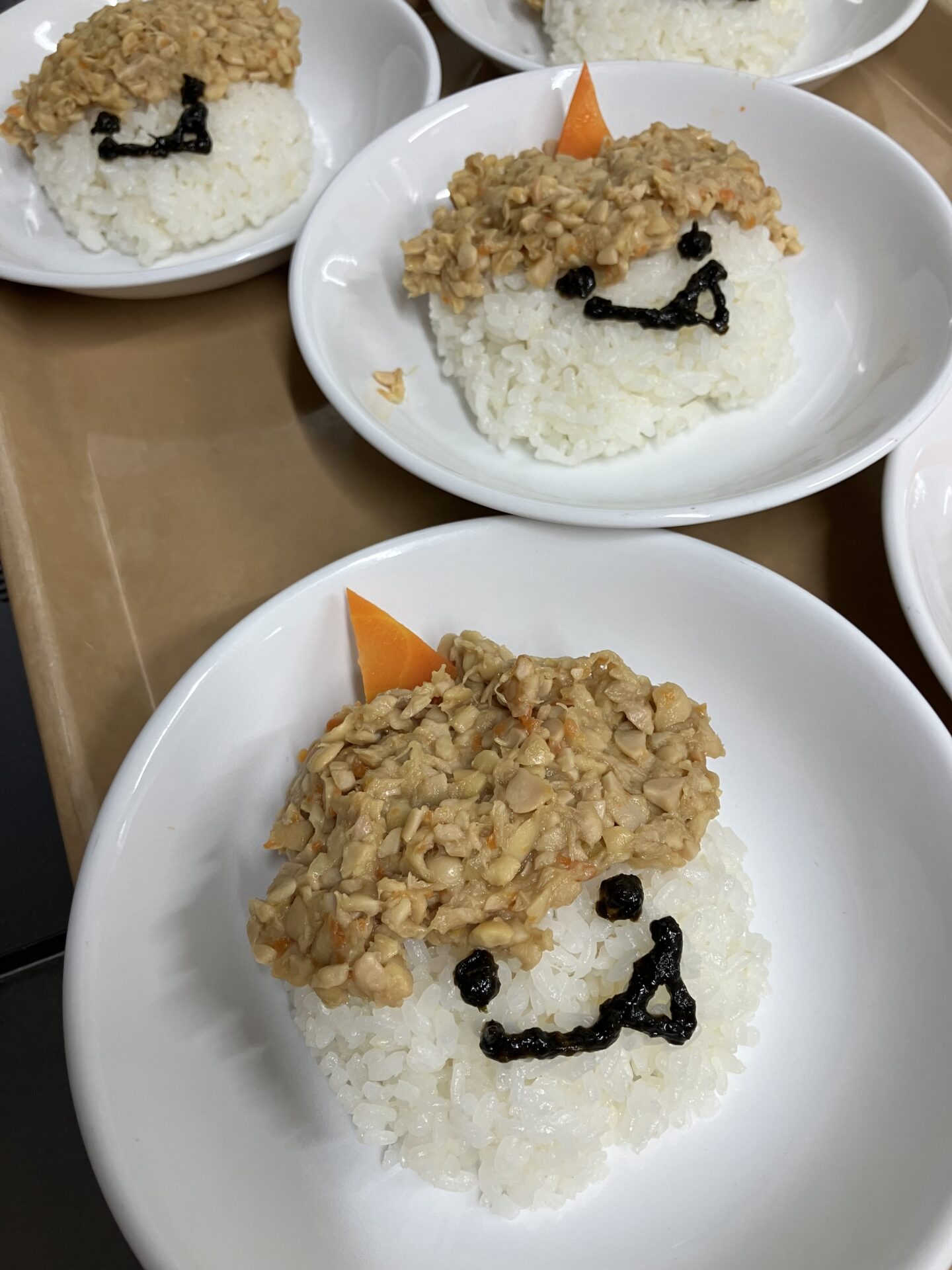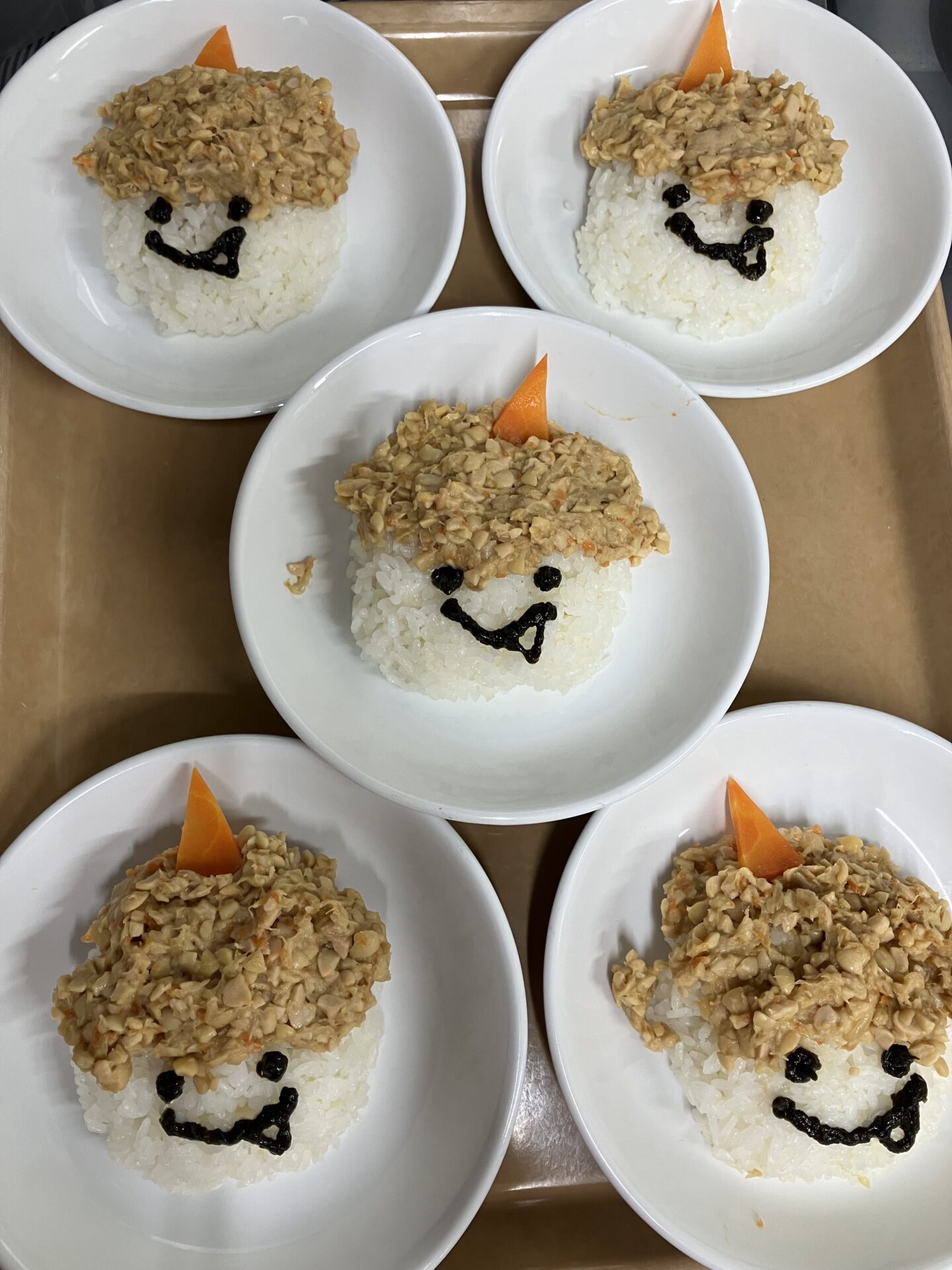 鬼を怖がっている子もいるので、ごはんは可愛らしい表情にしてみました!