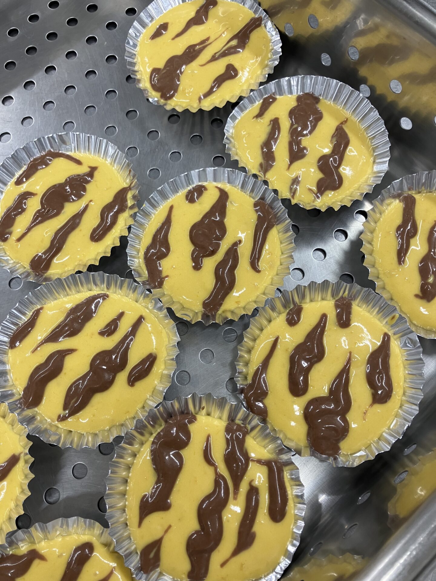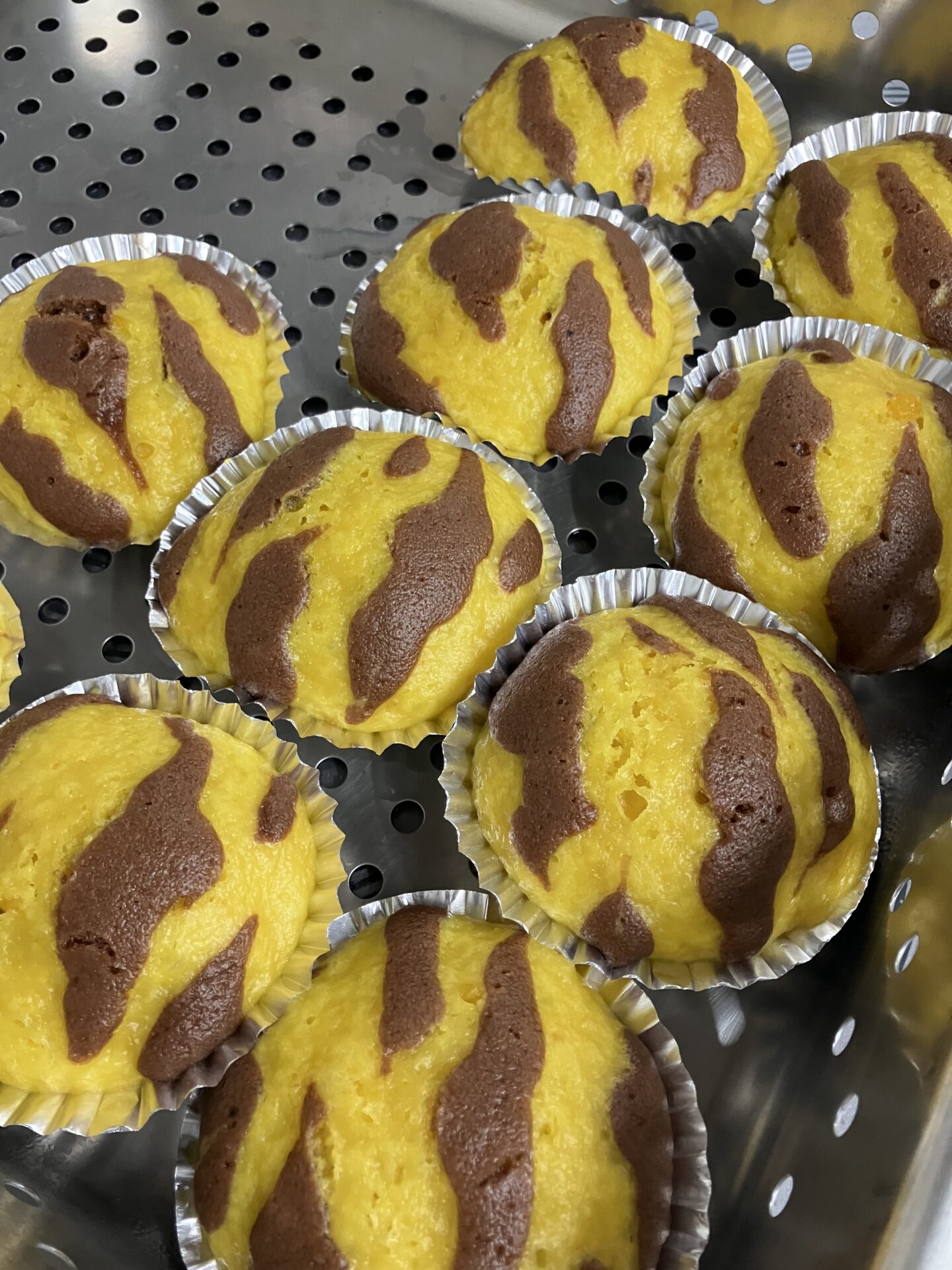 おやつはかぼちゃとココア生地で作った蒸しパンです。
