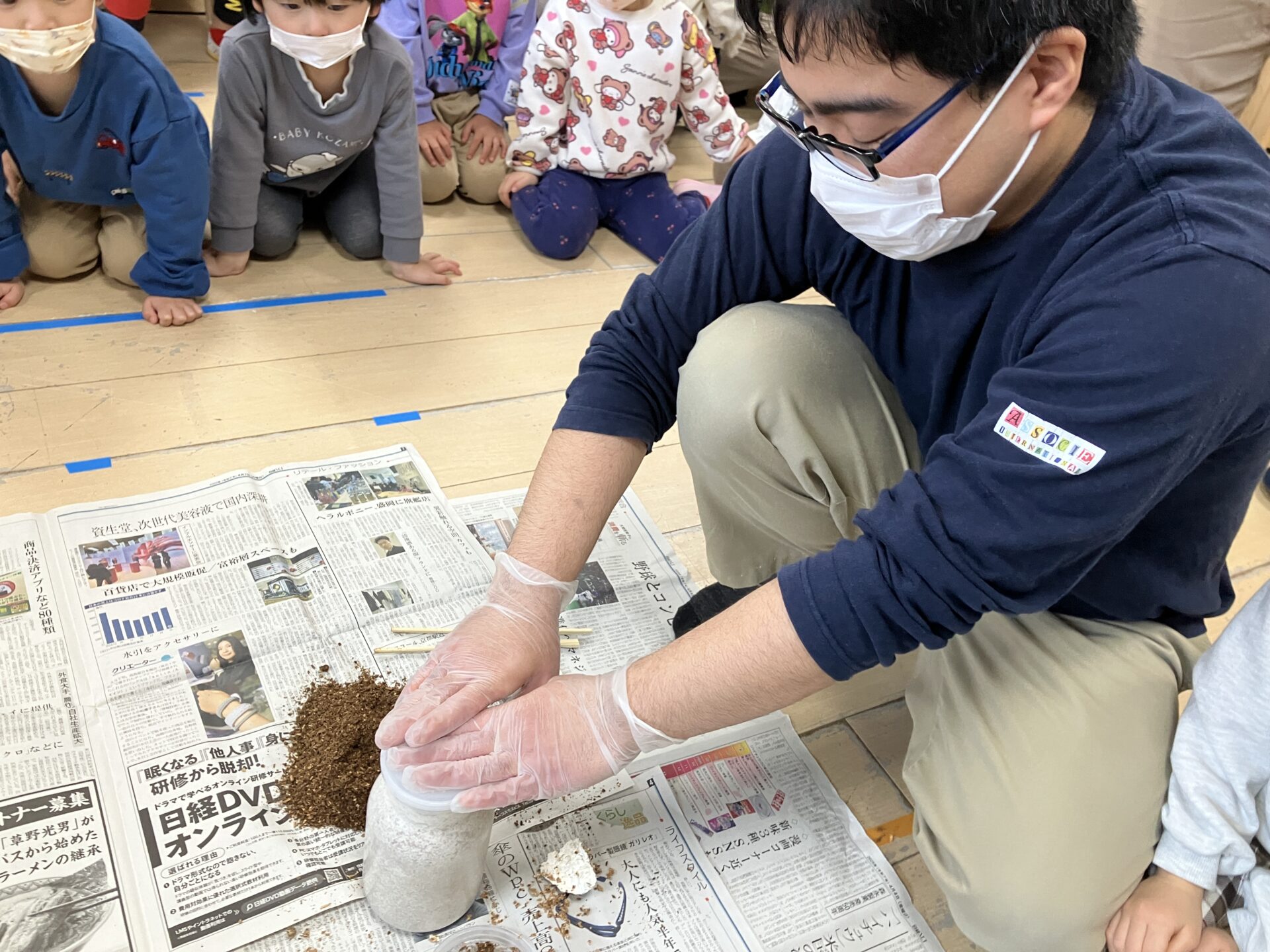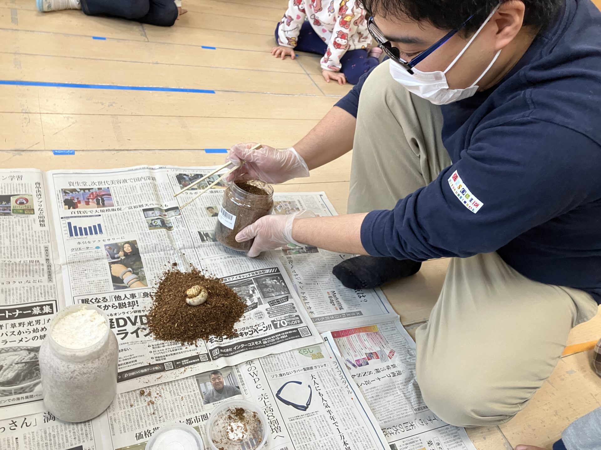 保育者「大丈夫だよ!少し同じ土を入れてあげないと幼虫さんがびっくりしちゃうんだ!」