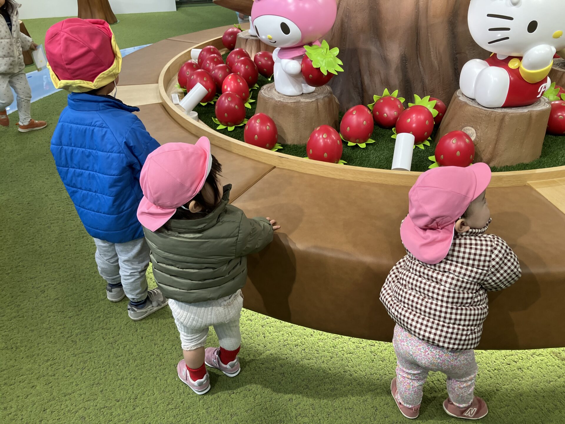 この後、お餅つき大会や撮影会などがあったのですが、キティちゃんの近くに特別に行かせていただき、触れることができて大満足で帰園しました。