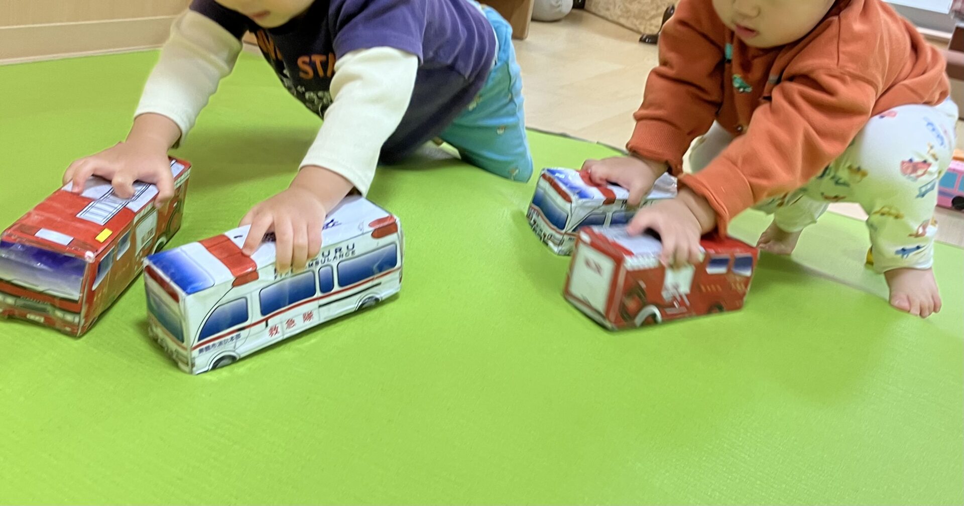 救急車の時は「ぴーぽー、ぴーぽー」と言いながら、また消防車の時は「うー」と救急車や消防車に