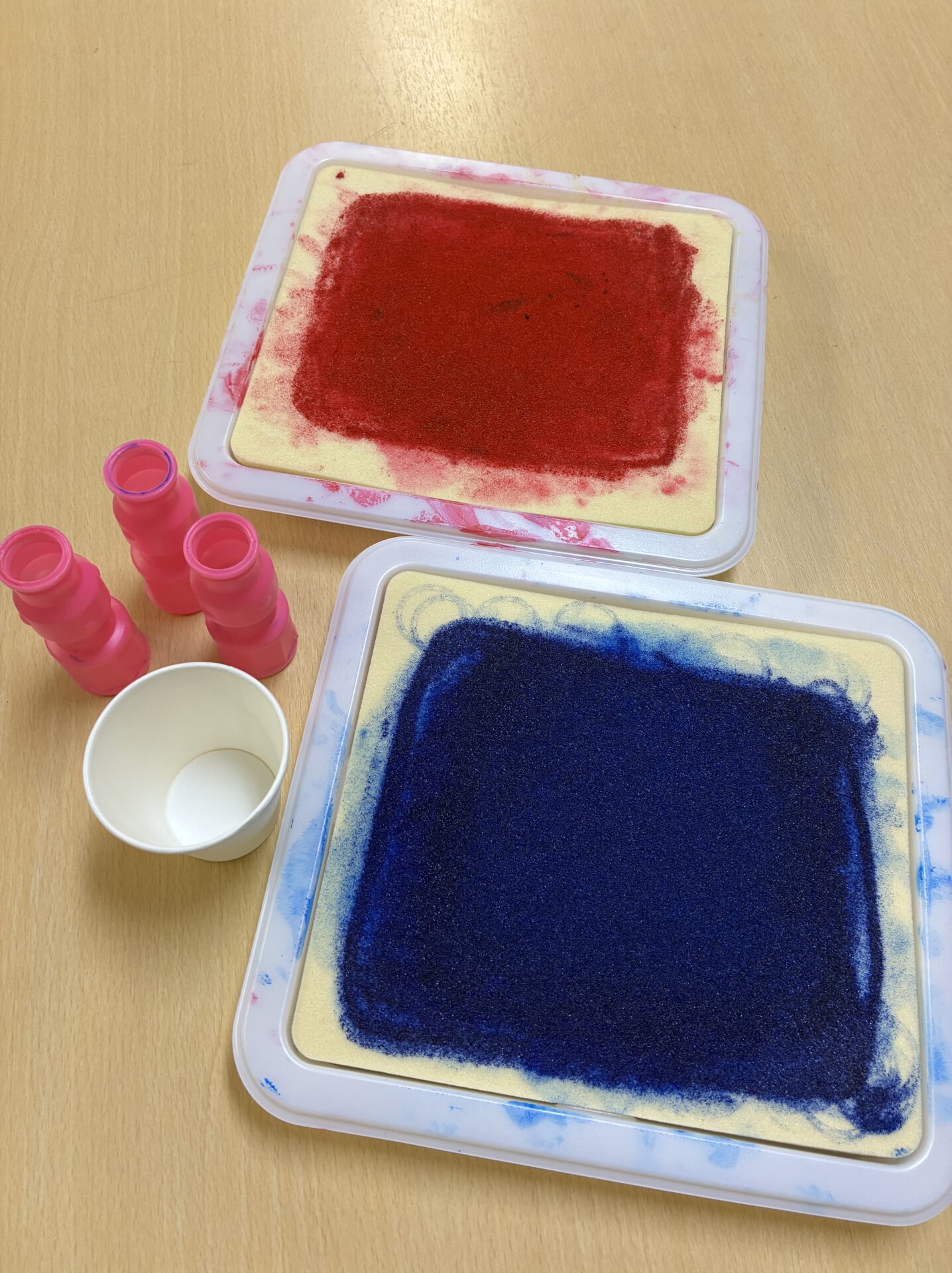 小さな容器を使ったスタンプを取り入れています。