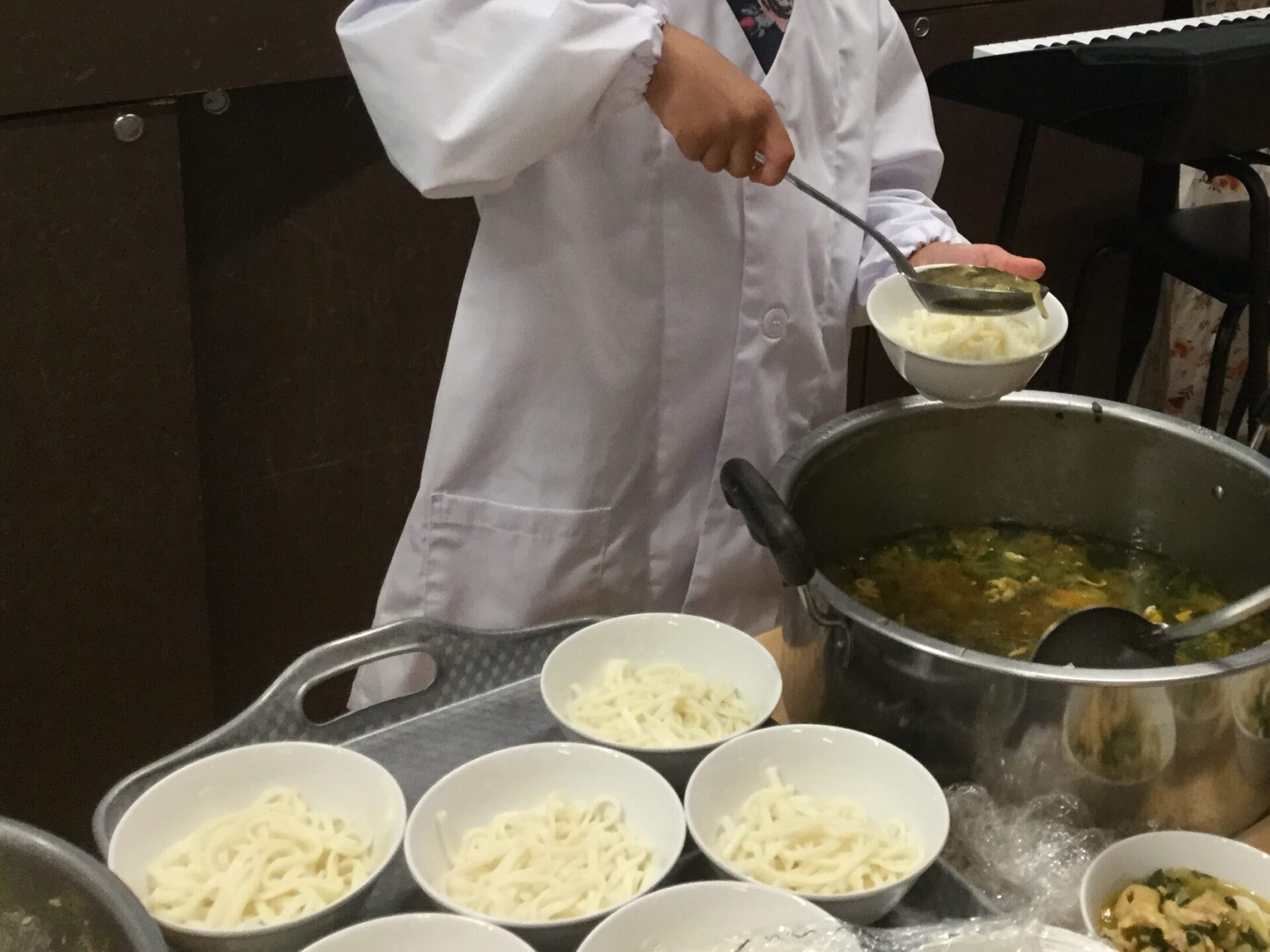 給食当番を行う前に、流れや注意点を【てまきずし】で表し、お話ししました。