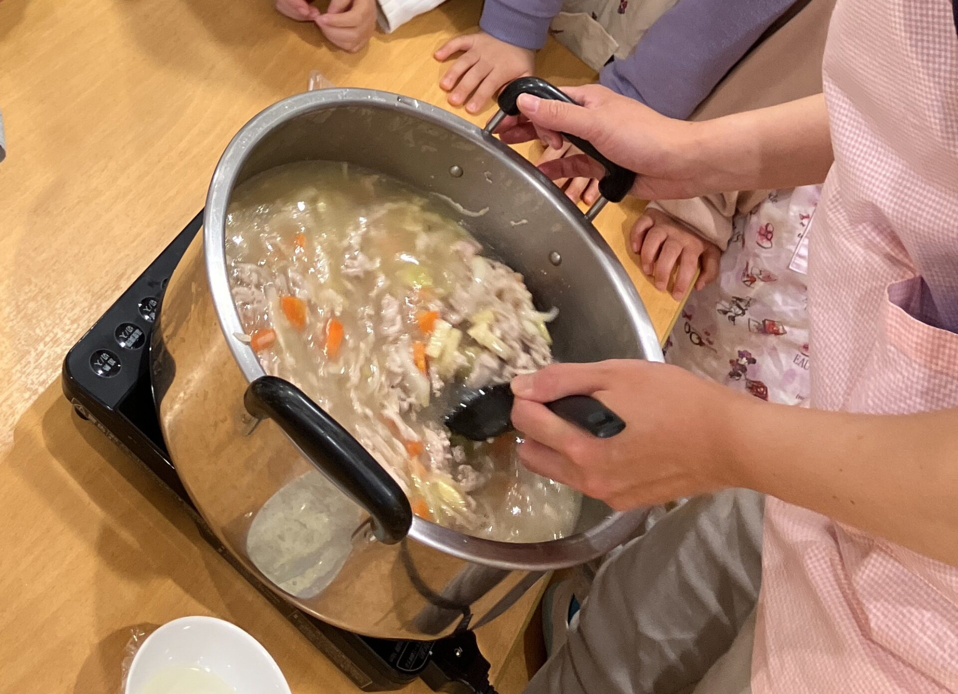 煮込んでいる間に片付けをしたり、ちょっとだけ卒園式の練習をしたり。