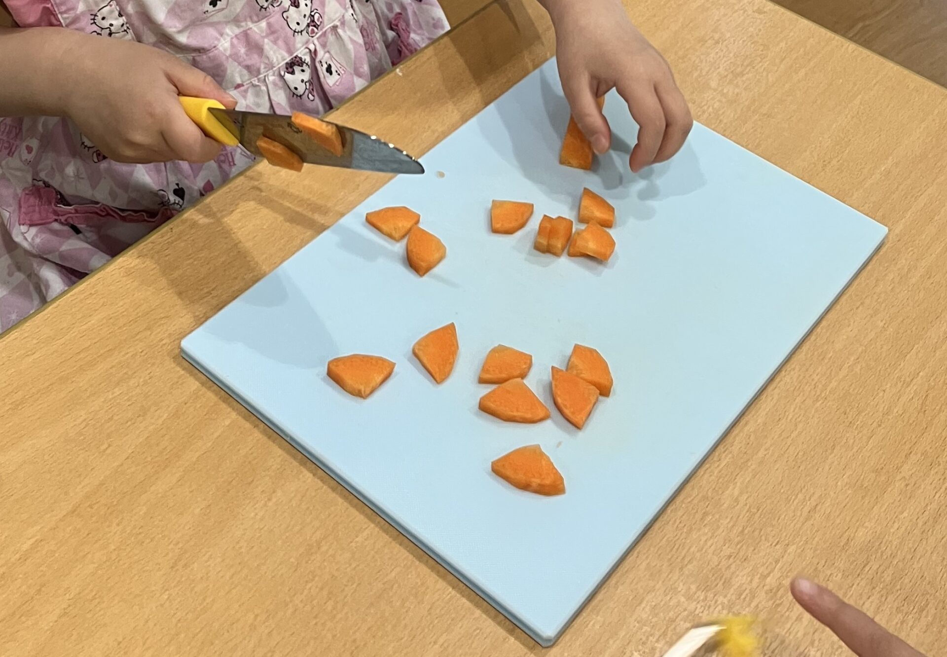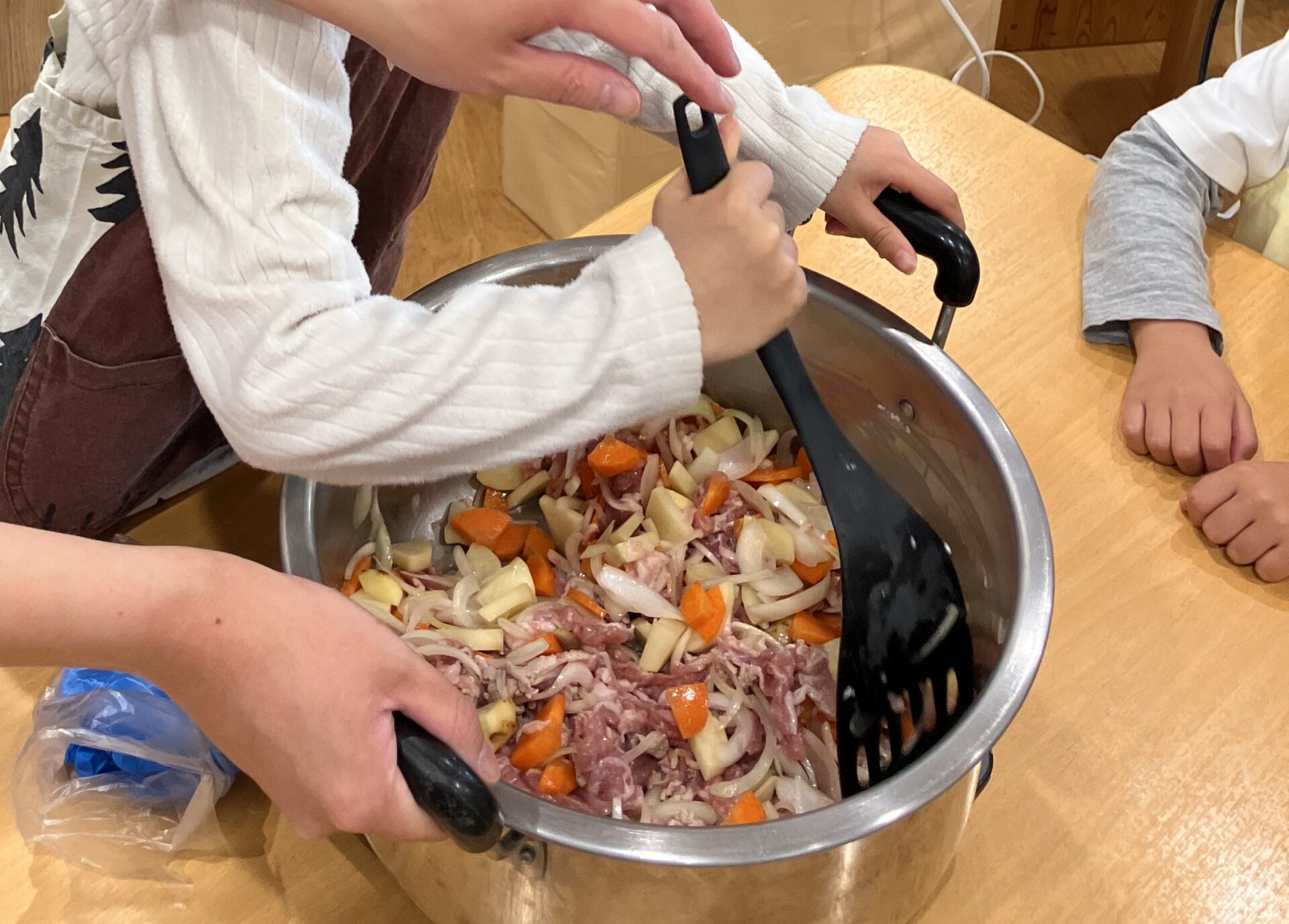 今日は5歳児さんがカレー作りに挑戦したので、その様子を紹介します♪