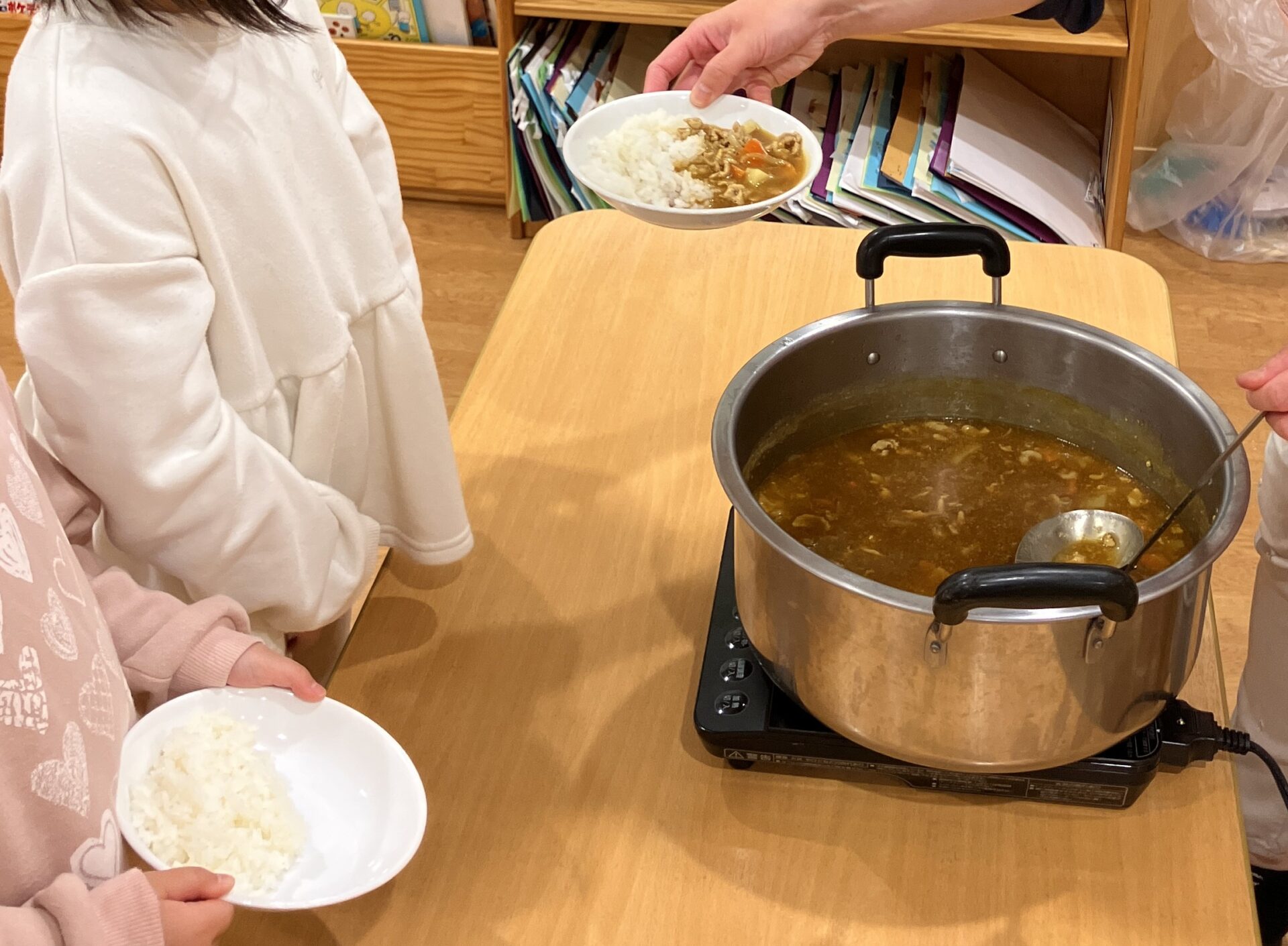 5歳児さんにとっては最後の食育となりましたが、カレー作りは大成功!