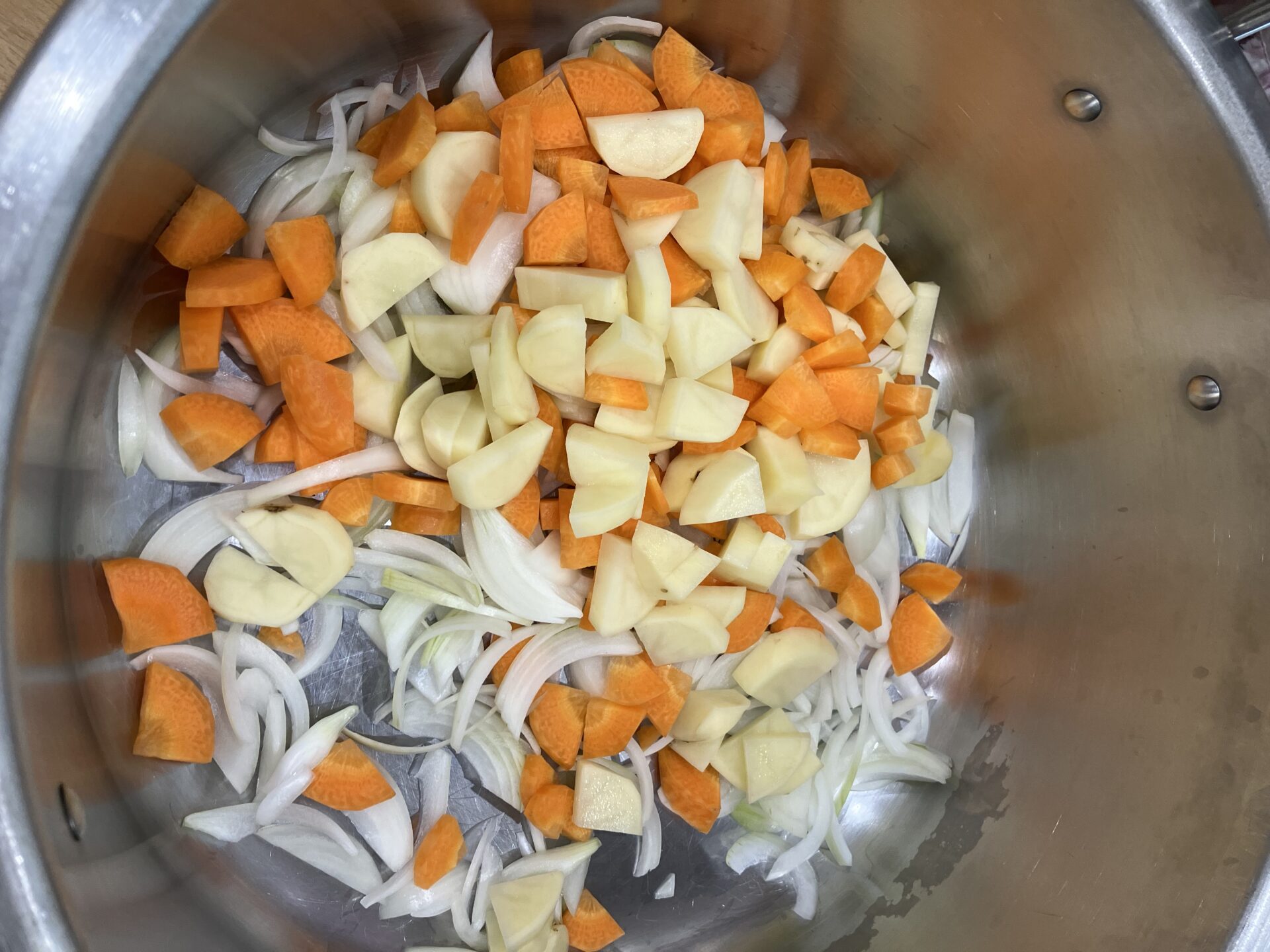 じゃがいも・にんじんはいちょう切り、たまねぎは薄切りに!