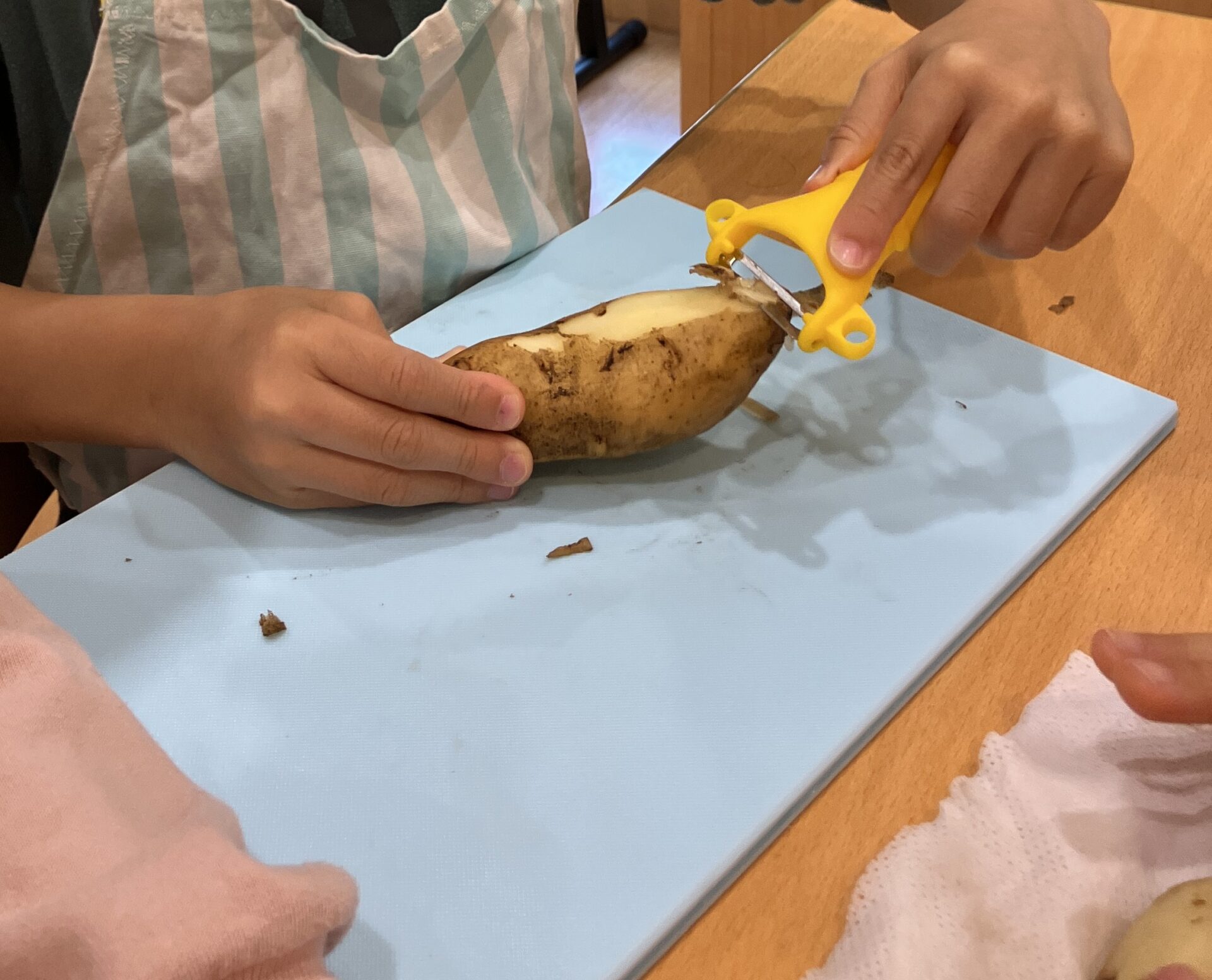 じゃがいも・にんじんはピーラーを使って皮を剥いていきましたが、みんな上手に出来ました☆