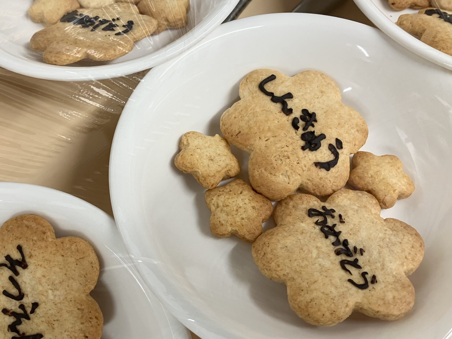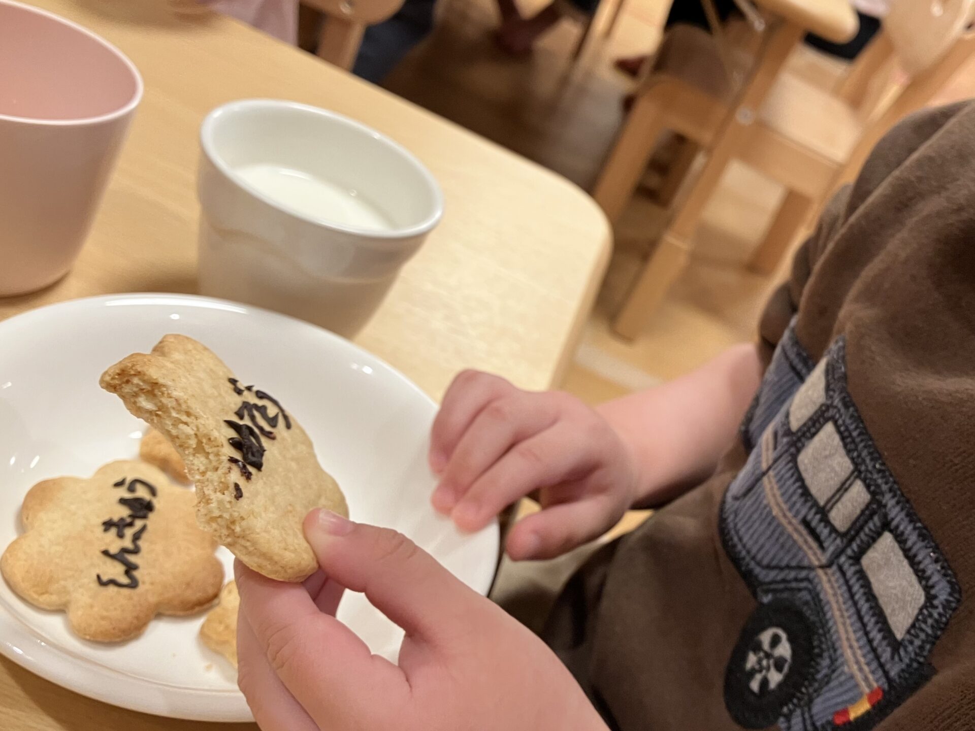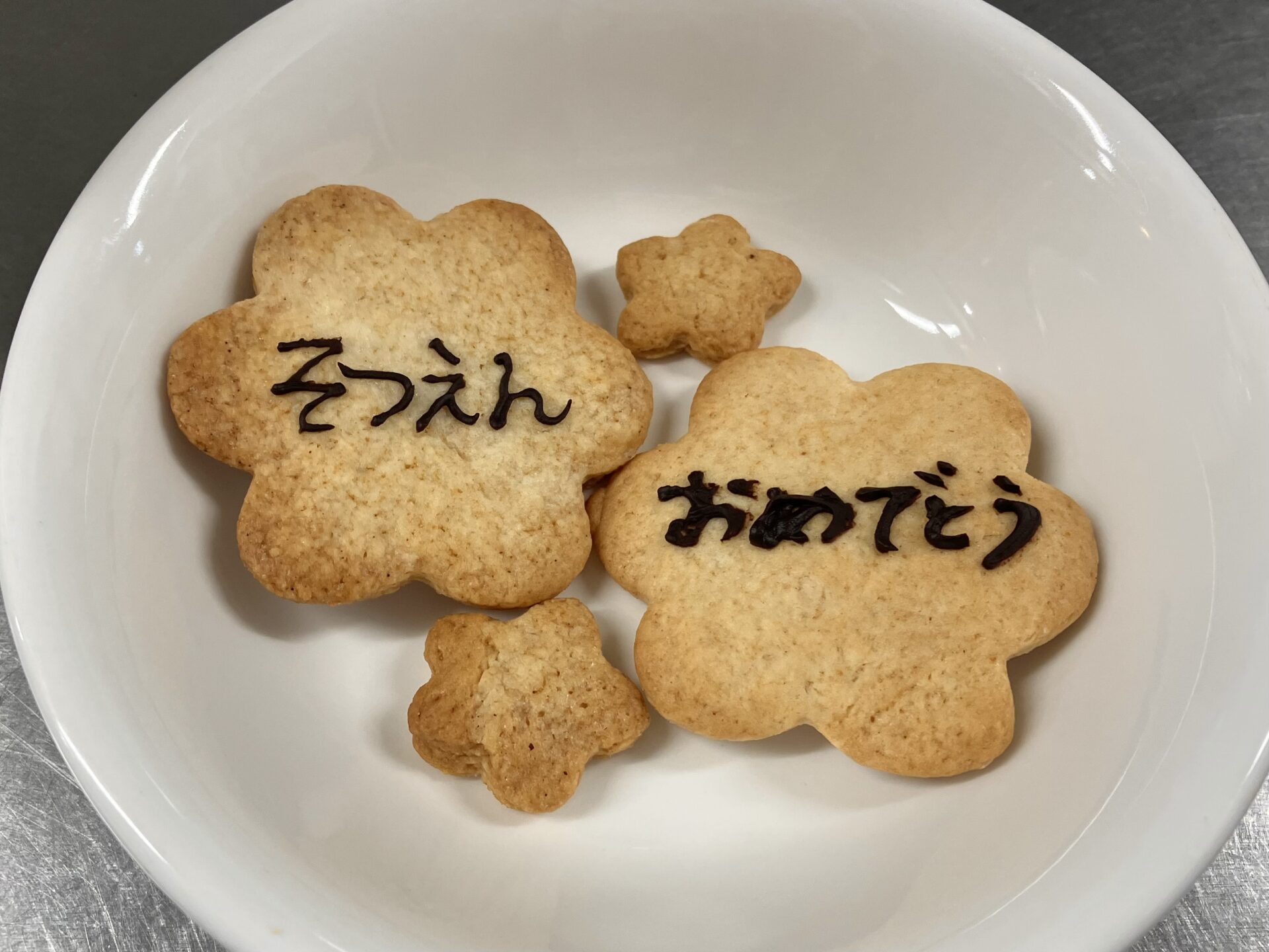 おやつには、卒園・進級おめでとうの気持ちを込めた花型クッキーを提供しました♪