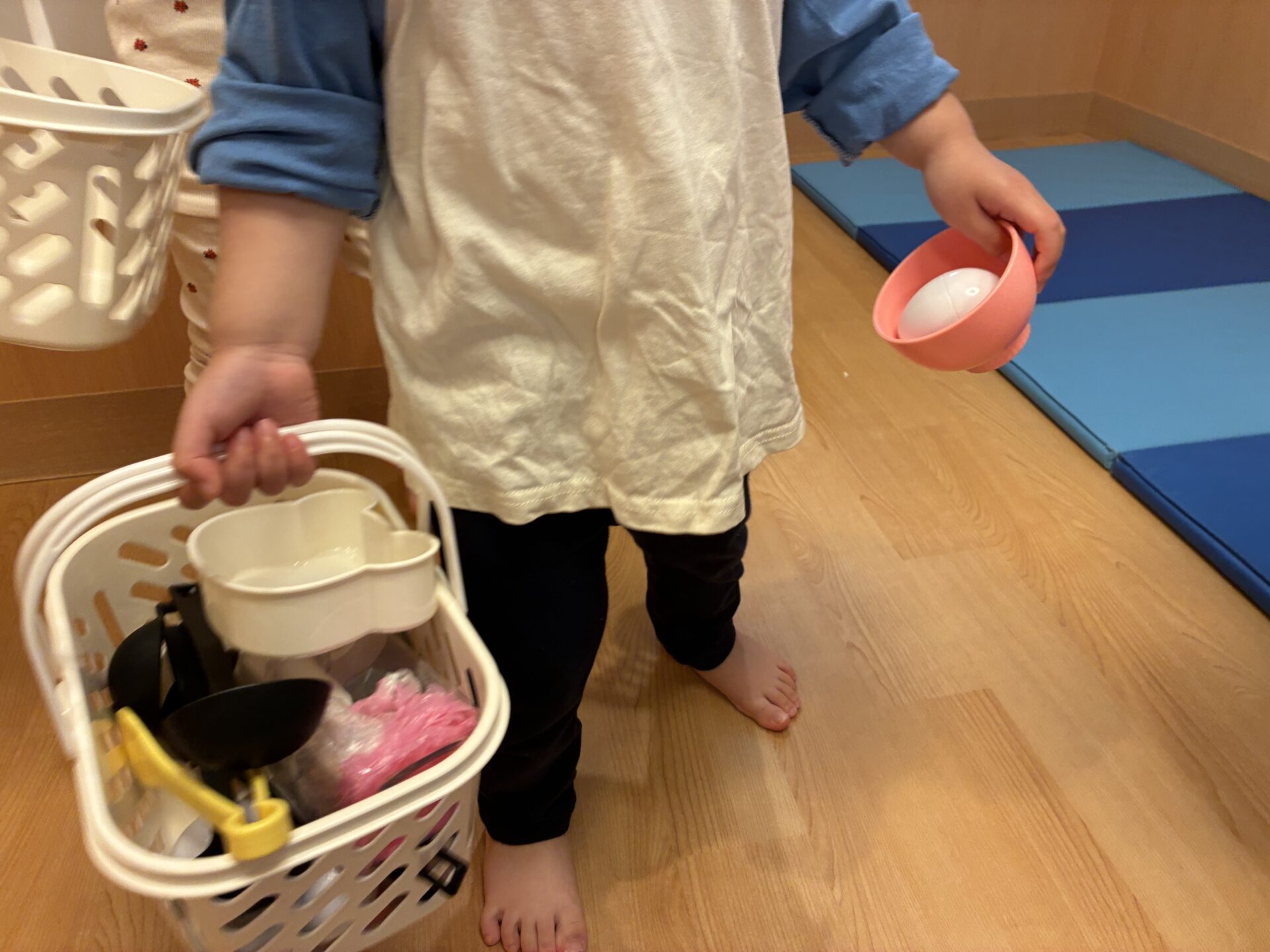 うさぎ組さんのお部屋にはおままごとの素材がたくさん並んでいます。