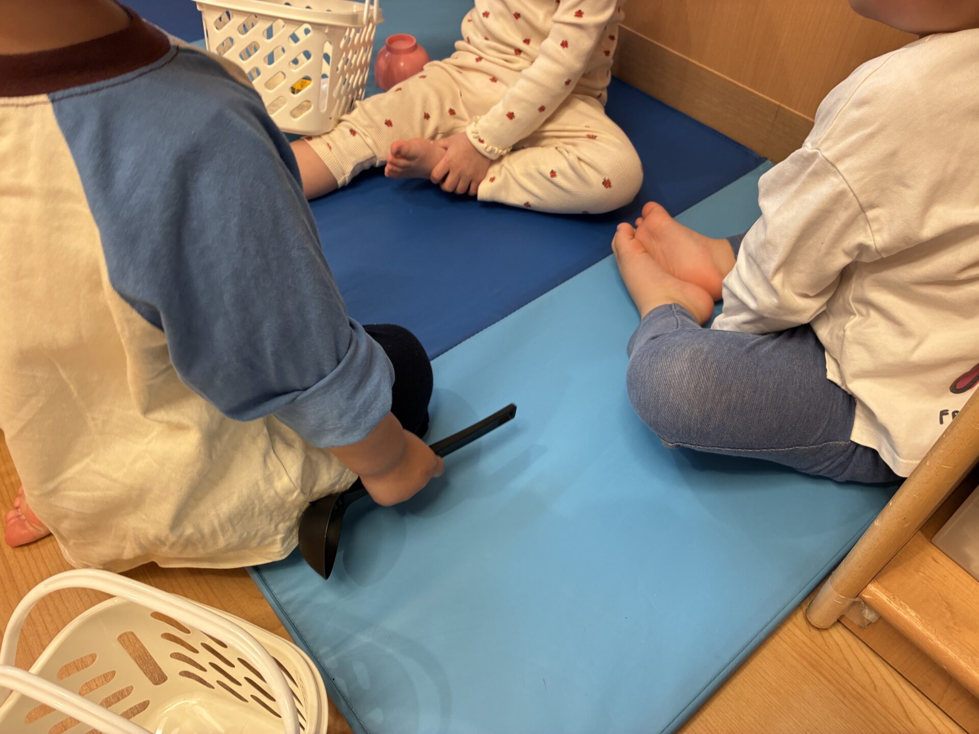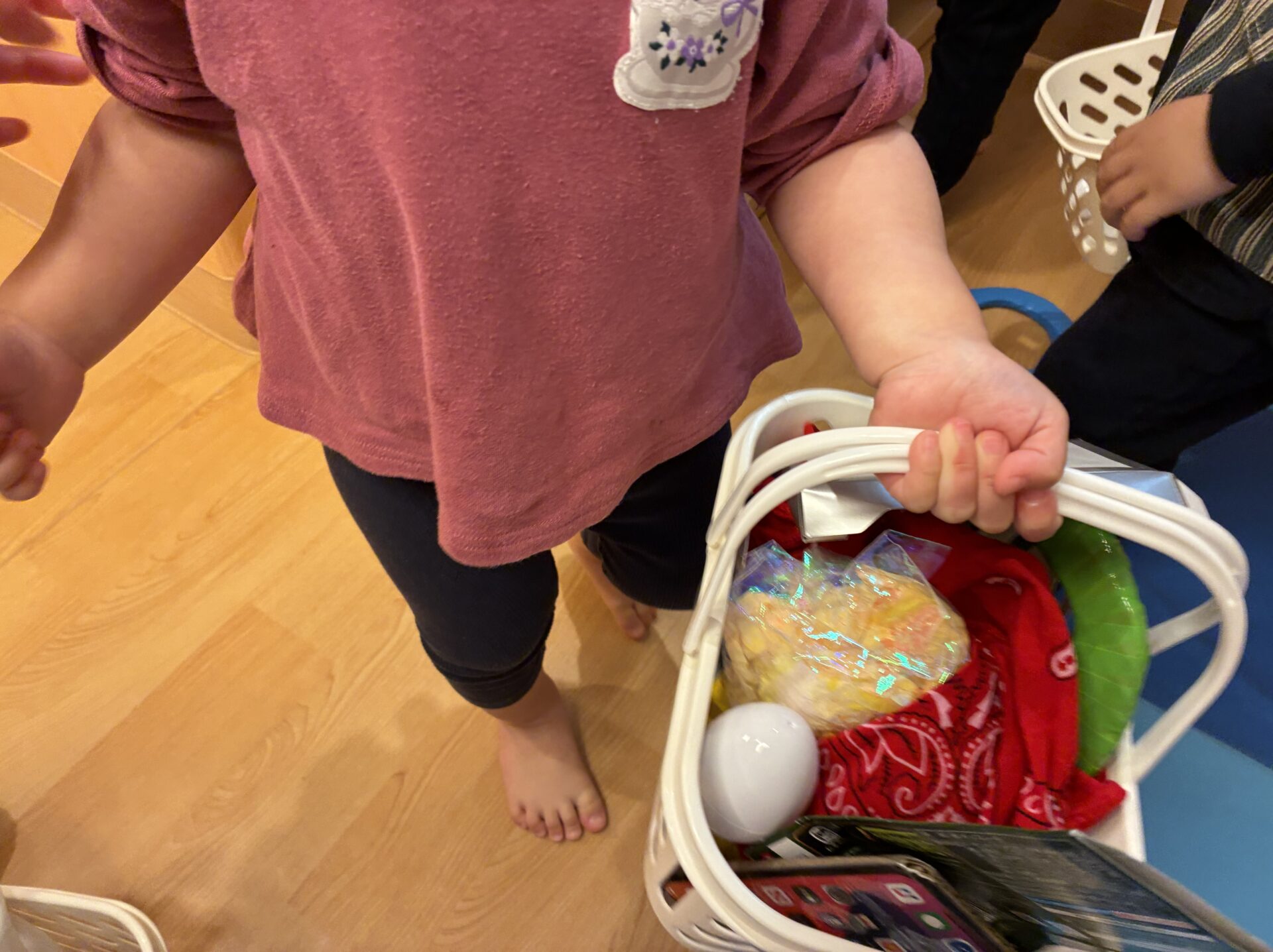 「コンビニに行ってくるね。」「ご飯作るねー。」とごっこ遊びを楽しんでいます。