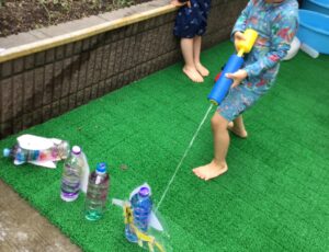そんな中でも4歳児クラスで人気なのが、水鉄砲!!