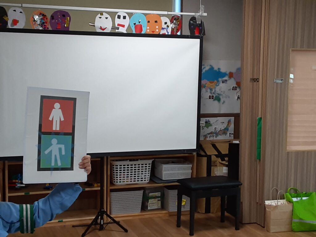と日々の生活や保育園での散歩のときに気を付けていることを、子どもたちは次々とお話ししてくれました。