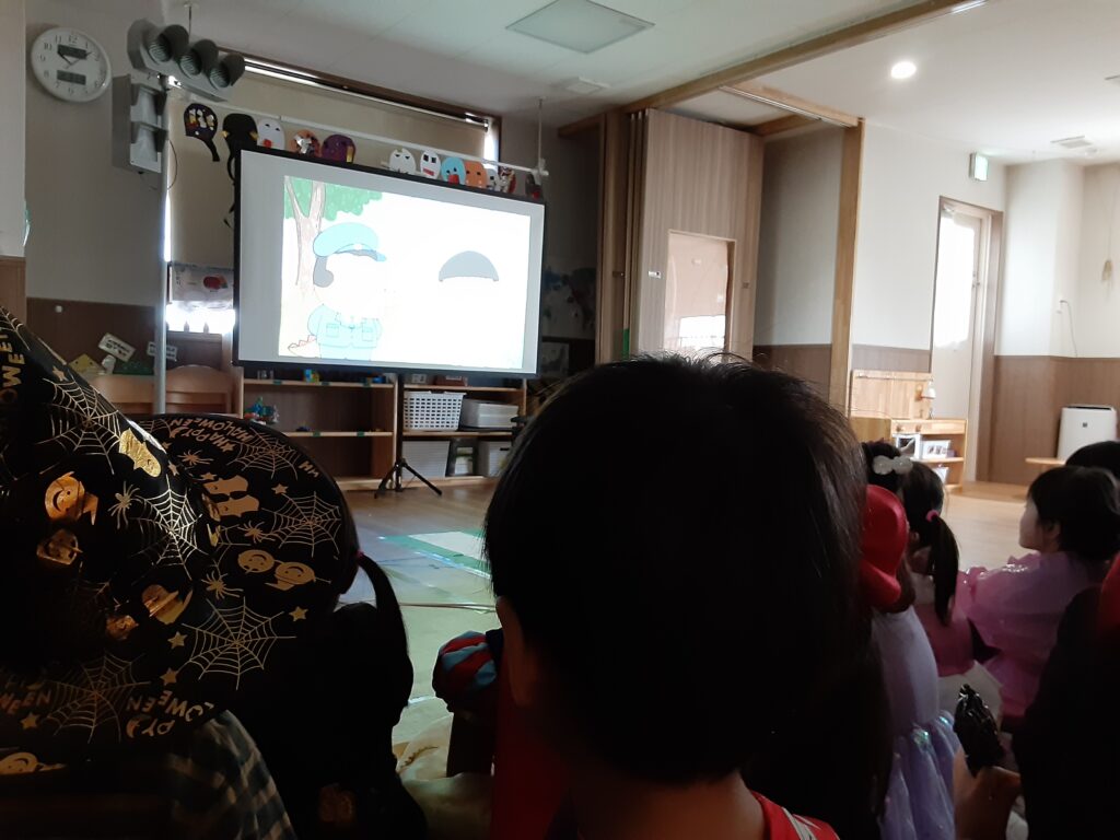 交通安全のお話を見ている子どもたちの目は真剣そのもの!!
