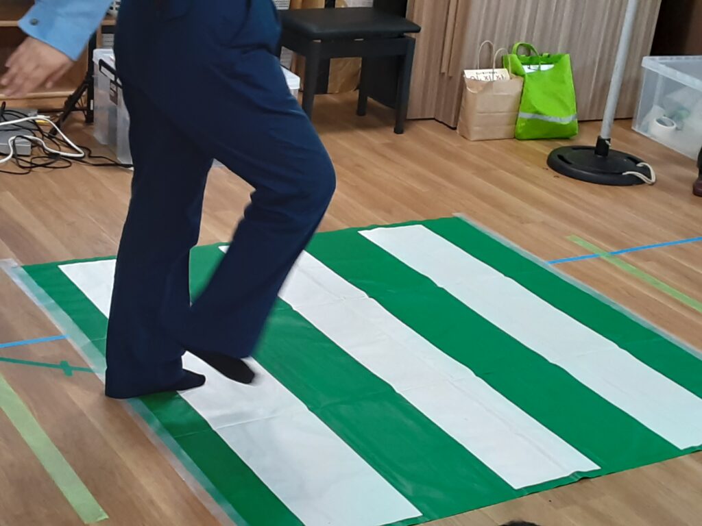 実際に横断歩道の渡り方を教えてもらい、順番に信号機を見てみんなの前で横断歩道を渡ってみました。