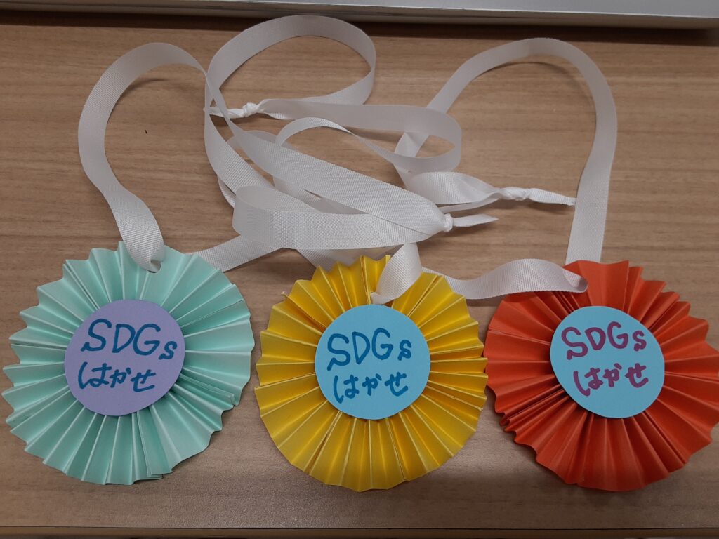 など、普段の生活からSDGsに繋がる内容をピックアップしています。できたところからチェックしていき、全て揃えればメダル(画用紙の切れ端を集めて作ったもの)と賞状がもらえるようになっています。