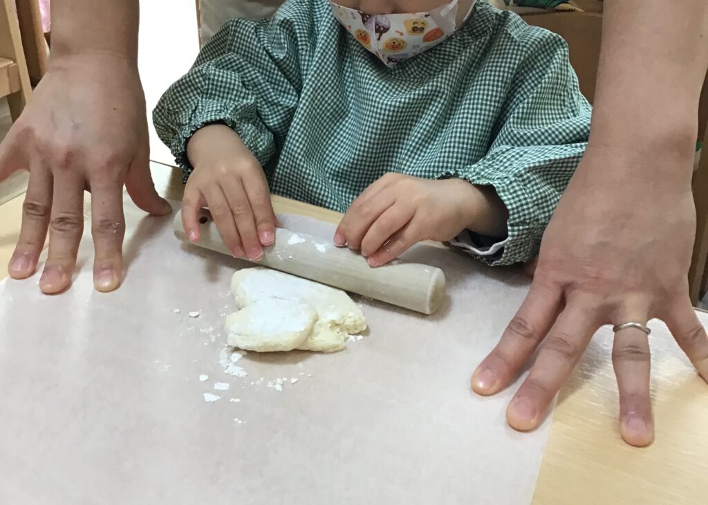 前回のクッキー作りで麺棒を使うことに興味を持った子どもたち!