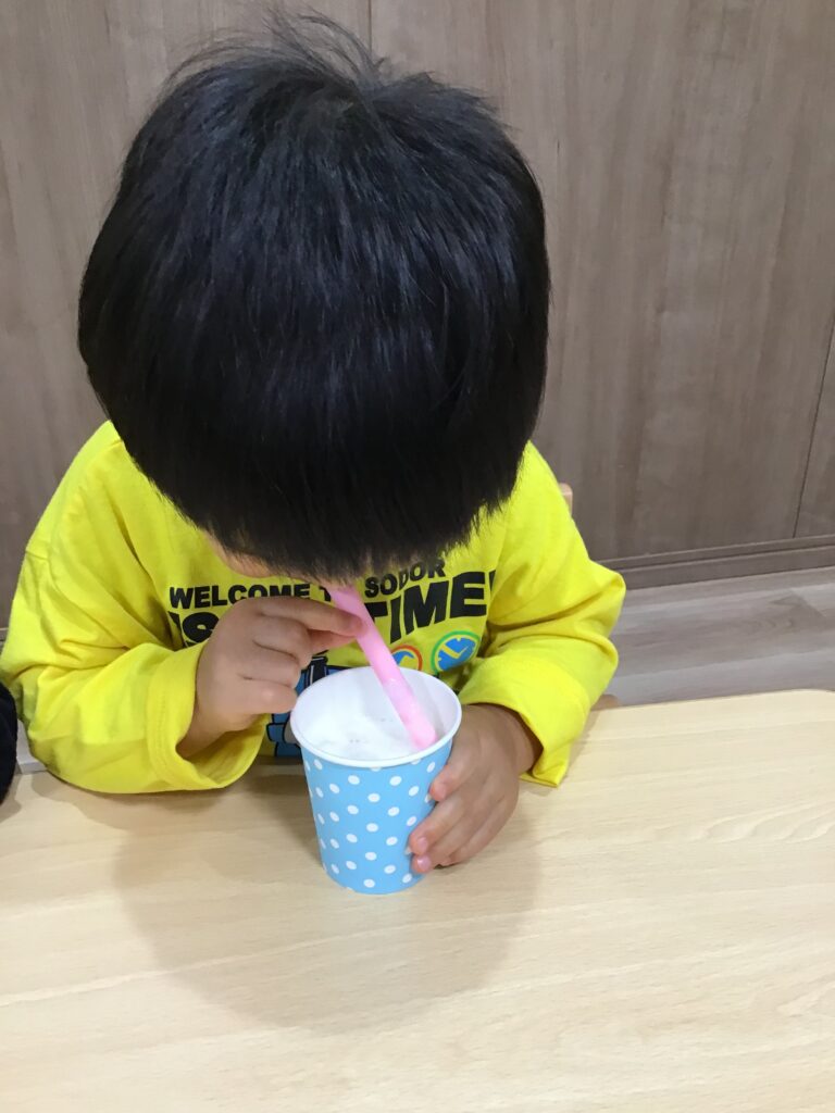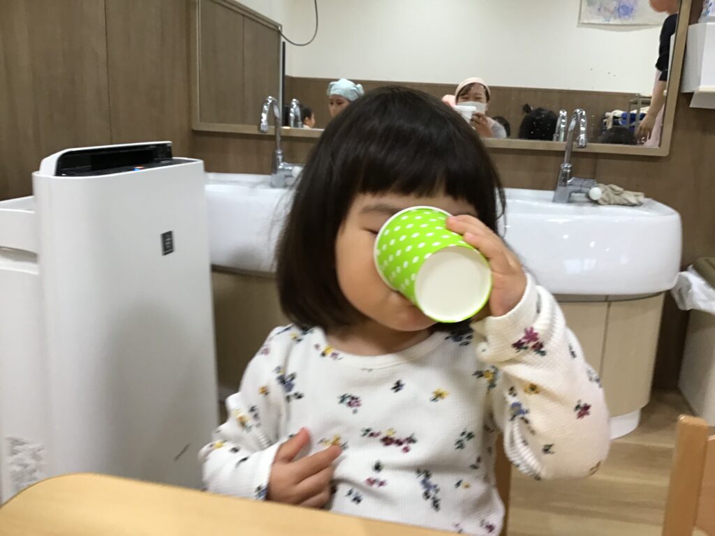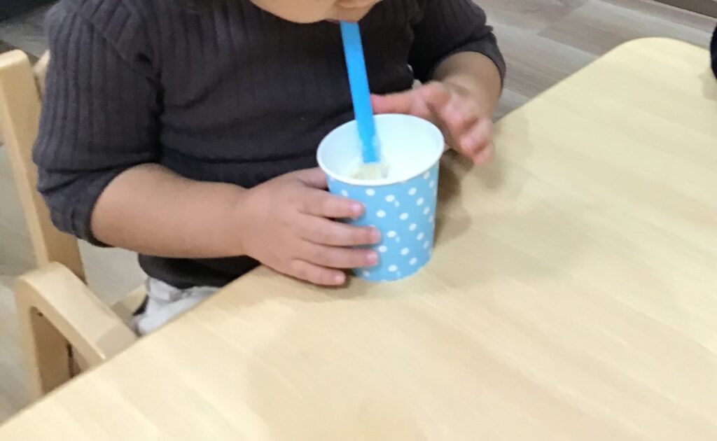 果物が大好きな1歳クラスさん!あっという間に飲み切っていました♪