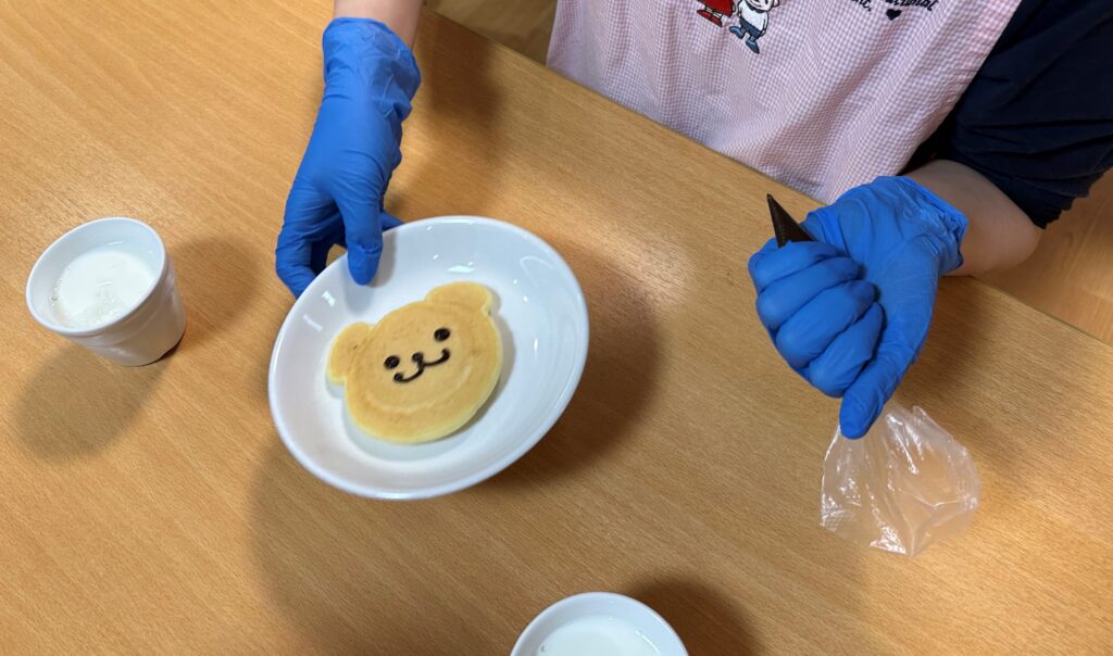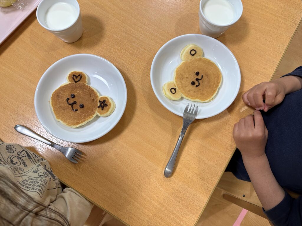 今回は、13日のおやつに「くまのほっとけーき」を提供しました。