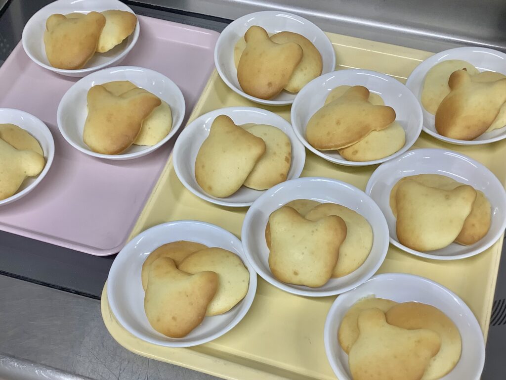 一つ一つ栄養士が作っていったので、顔の形が少しずつ違い個性豊かなしろくまちゃんができました!