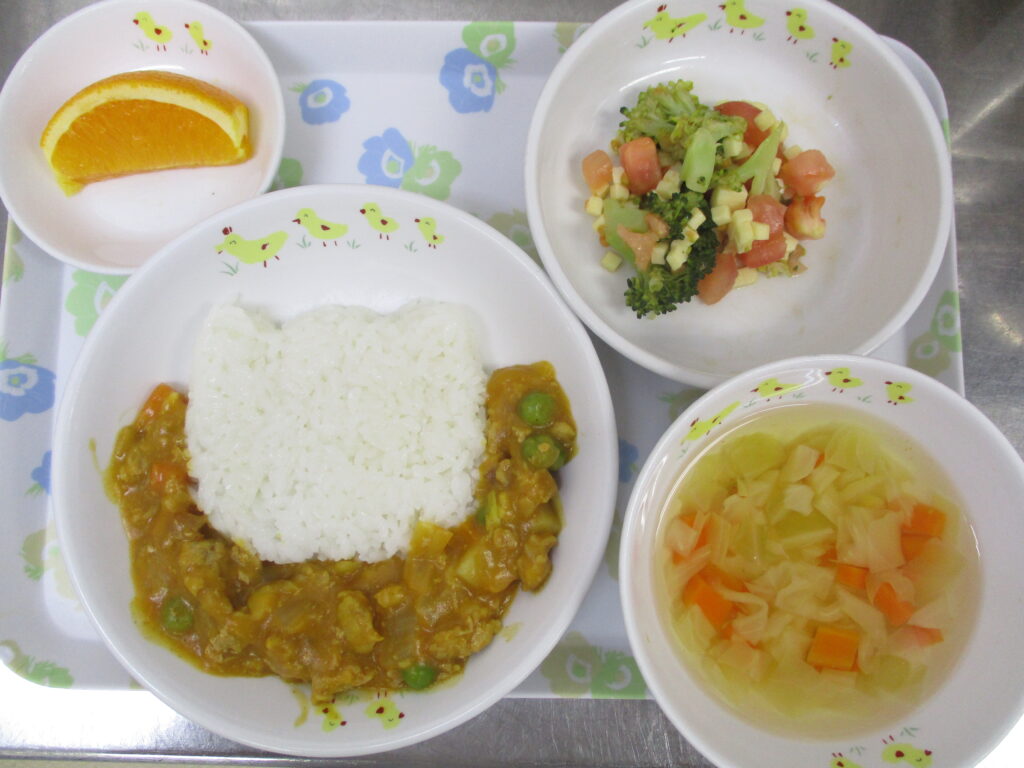 (献立:カレーライス、キャベツのスープ、