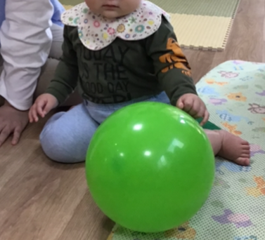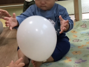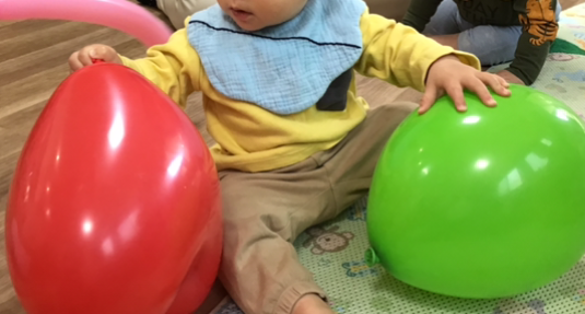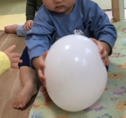 カラフルな色、風船のつるつるとした肌触り、掴んだ時の音など、一つの風船から視覚・聴覚・触覚など様々な五感が刺激されています。