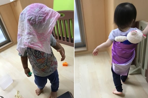 前回より、乳児組(1・2歳児)の子どもたちが楽しんでいる遊びの様子を